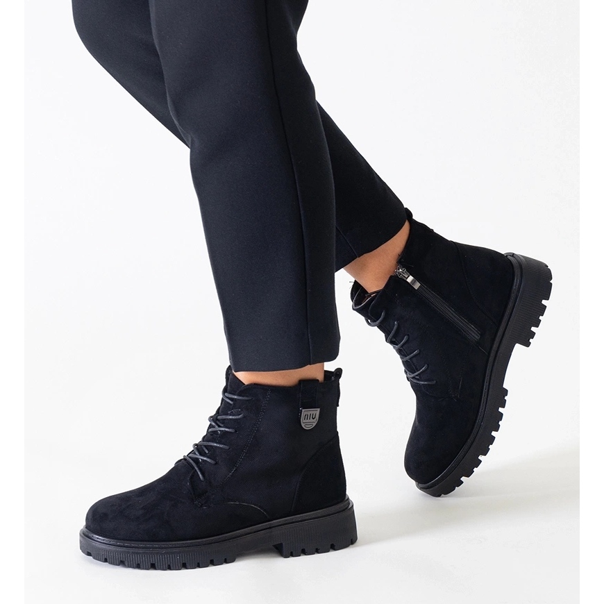 Détails: Bottes de travail en éco-daim noir sur la plateforme Leonora le noir