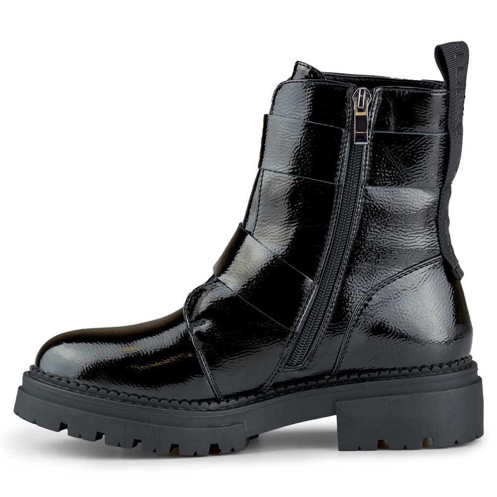 Les travailleurs modernes d'Axelle combinent un look à la mode et verni avec des solutions pratiques, ce qui les rend superbes en tant que chaussures pour la saison automne / hiver. La surface noire et brillante donne aux chaussures un caractère élégant, et la plate-forme solide assure la stabilité et le confort tout au long de la journée.