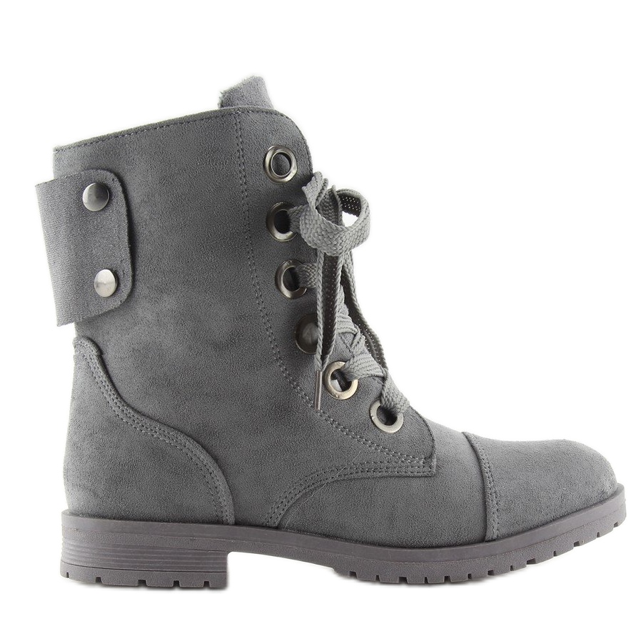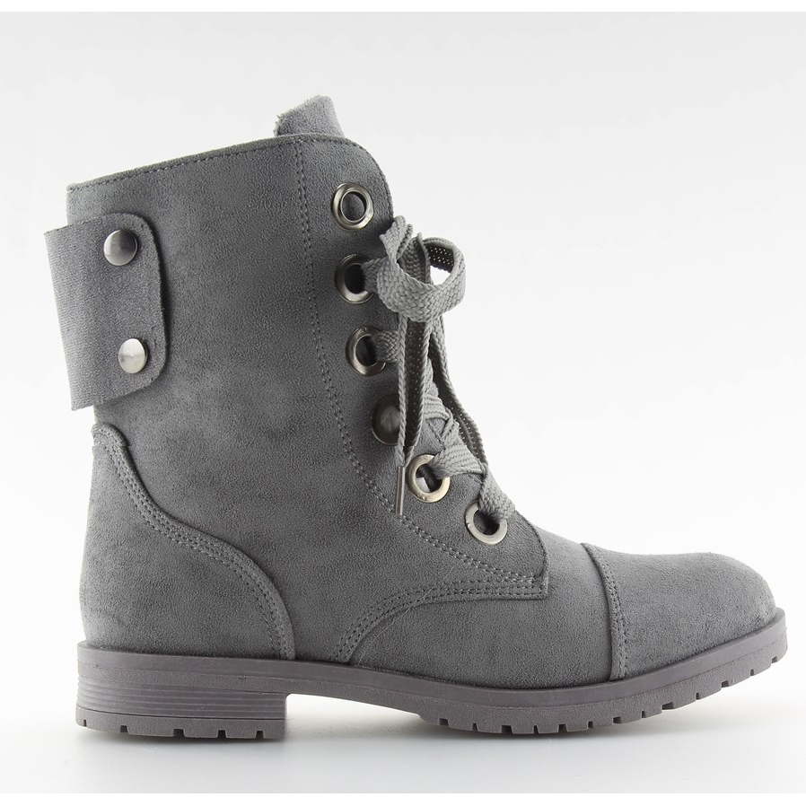 Découvrez le style unique et le confort qu'offrent les bottines workwear à lacets de couleur gris 8901 gray. Ces élégantes bottes pour femme au style militaire ajouteront un caractère unique à chacun de vos looks. La coupe slim souligne les atouts de la silhouette féminine et les strass à l'arrière de la tige leur donnent un peu d'audace.