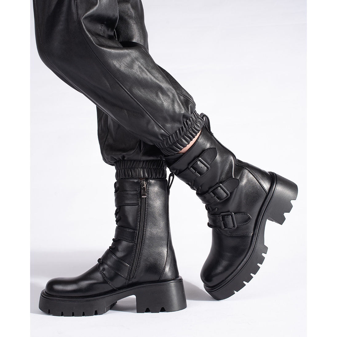 Détails: Bottes de travail hautes pour femmes noires à boucles le noir