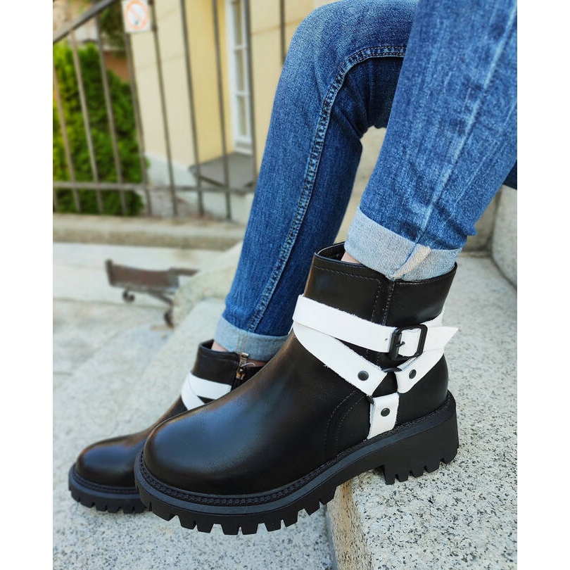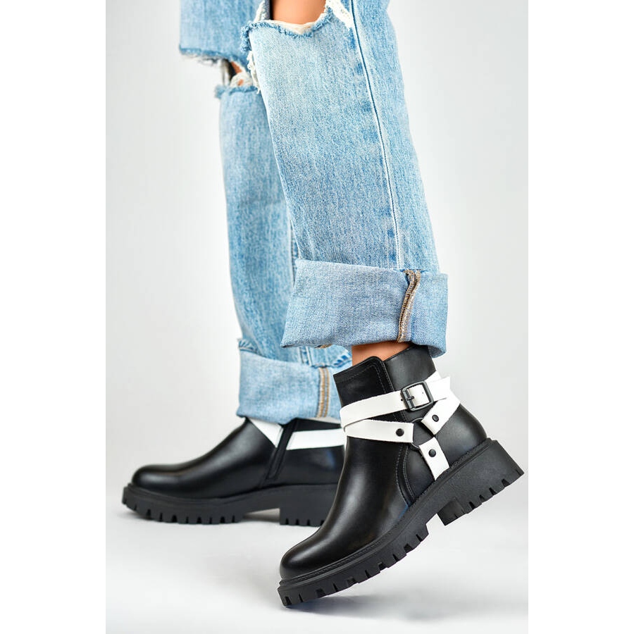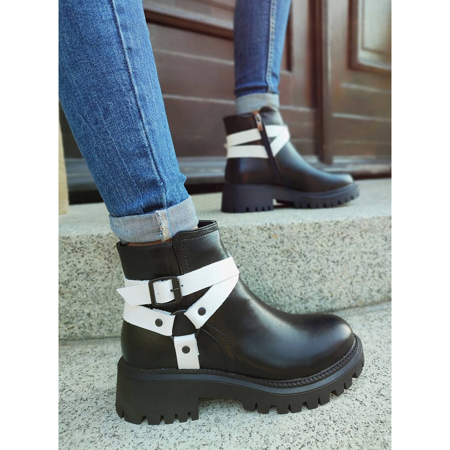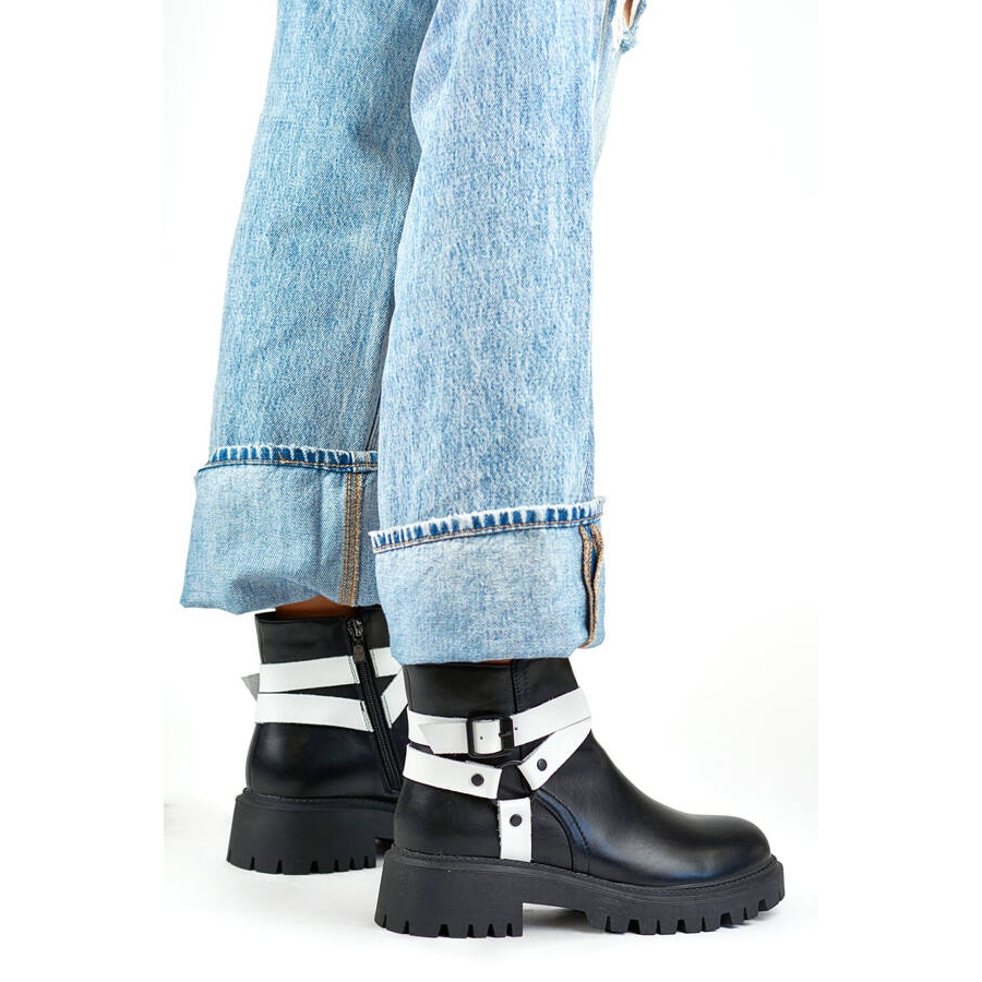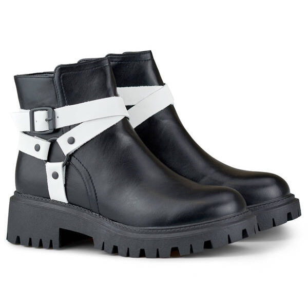 Détails: Bottes de travail isolées à sangles pour femme, noir 250043BW-PU blanche