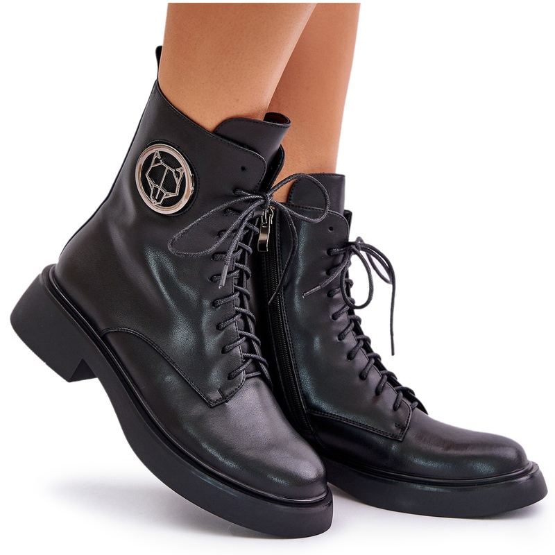 Les bottes sont équipées à la fois de laçage et de la fermeture à glissière, ce qui les rend rapides et sans problème. Le talon plat de 4,5 cm assure un maximum de confort tout au long de la journée, et le nez arrondi ajoute un peu de classiques à cette coupe à la mode. De plus, la tige de la botte est décorée d'un détail subtil qui leur donne un caractère unique.