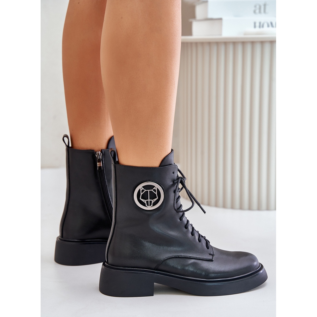 Nous présentons des bottes en cuir isolées avec une fermeture éclair avec une décoration de lorevine noire - le choix parfait pour les femmes qui apprécient le confort, le style et la fonctionnalité. Ces bottes élégantes en cuir naturel de haute qualité combinent le design moderne avec des solutions pratiques.