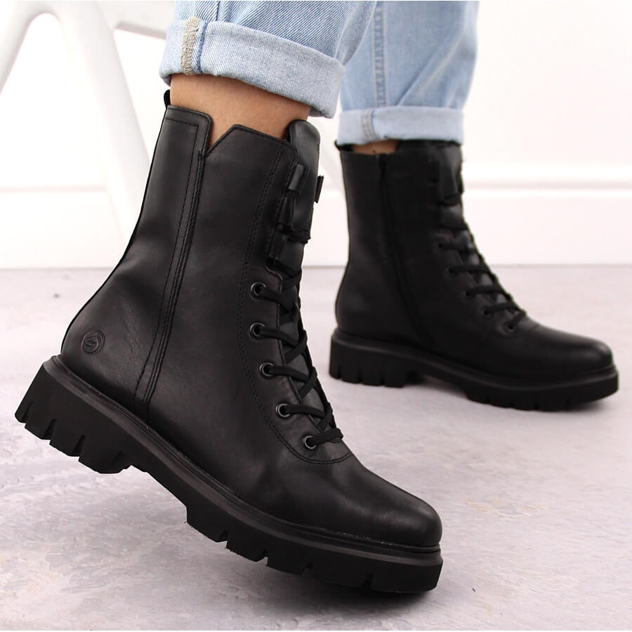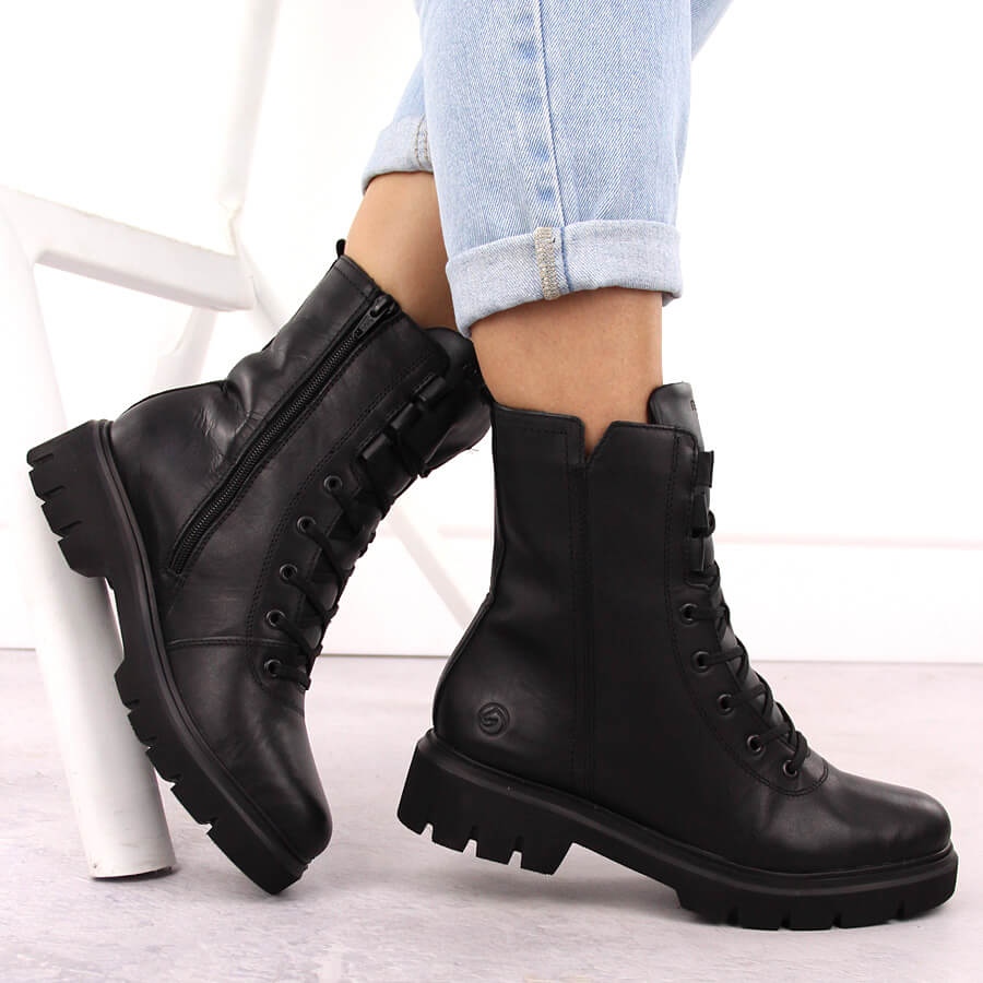 Remonte Bottes de travail isolées en cuir pour femme, noir Remonte D1W76-00 le noir