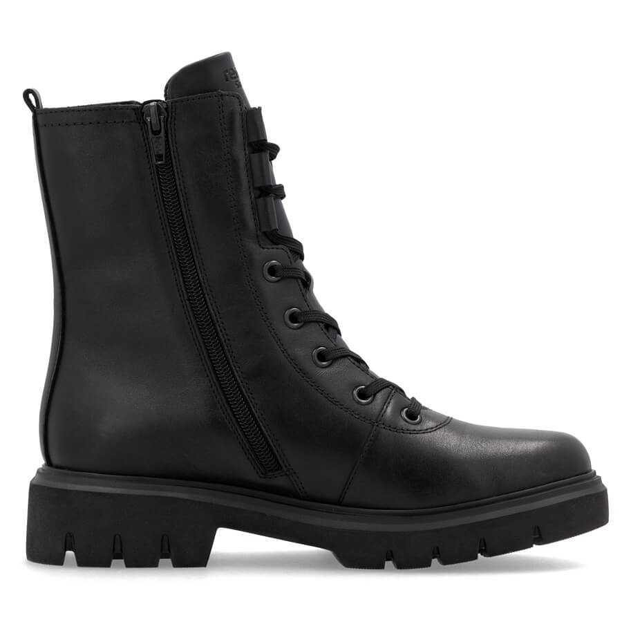 Détails: Bottes de travail isolées en cuir pour femme, noir Remonte D1W76-00 le noir