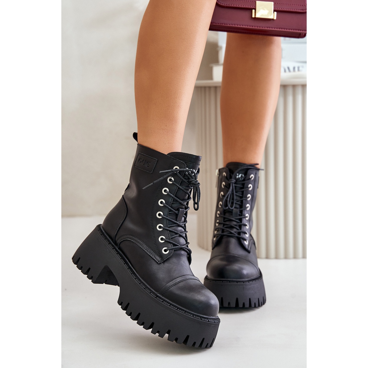 Fabriquées en cuir naturel de haute qualité, ces bottes se caractérisent par une construction solide, et leur plateforme massive et leur bloc plat assurent la stabilité à chaque pas. Grâce à l'utilisation d'une isolation sous forme de couvre-chaussures, vos pieds se sentiront à l'aise même les jours les plus froids.