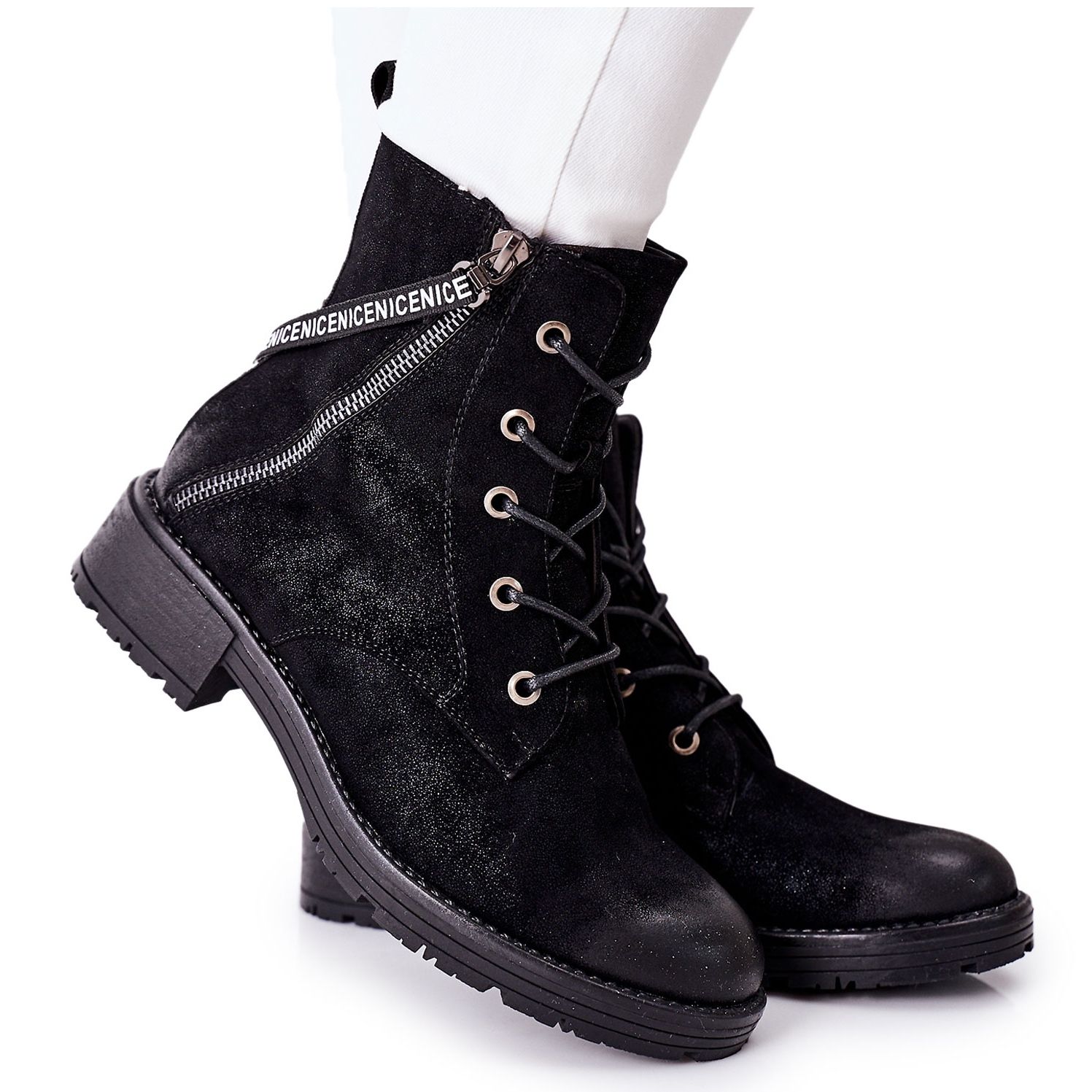 Vinceza Boots Women's Isulate Workers - Boots Black, Élégant et pratique qui fonctionnera les jours plus frais. Fabriqués en cuir écologique de haute qualité, avec une isolation à partir d'une couverture de chaussures, ils fournissent de la chaleur et du confort même à basse température. Le nez classique et arrondi et la semelle plate avec un confort de garantie de talon de 4 cm chaque jour, et le curseur sur le côté le rend plus facile à mettre. Un château décoratif supplémentaire et un laçage donnent au modèle un personnage à la mode "des travailleurs".