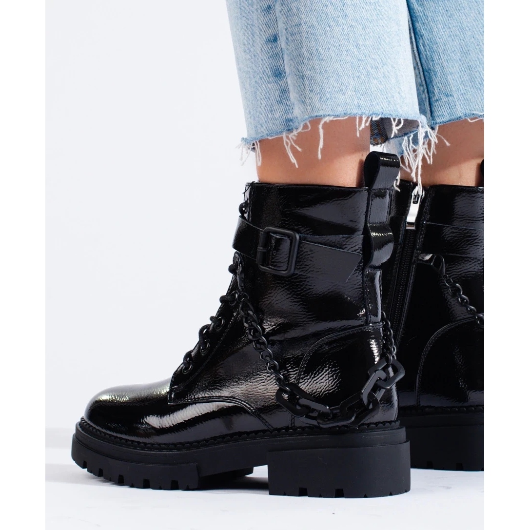 Détails: Bottes de travail laquées noires avec chaîne Shelovet
