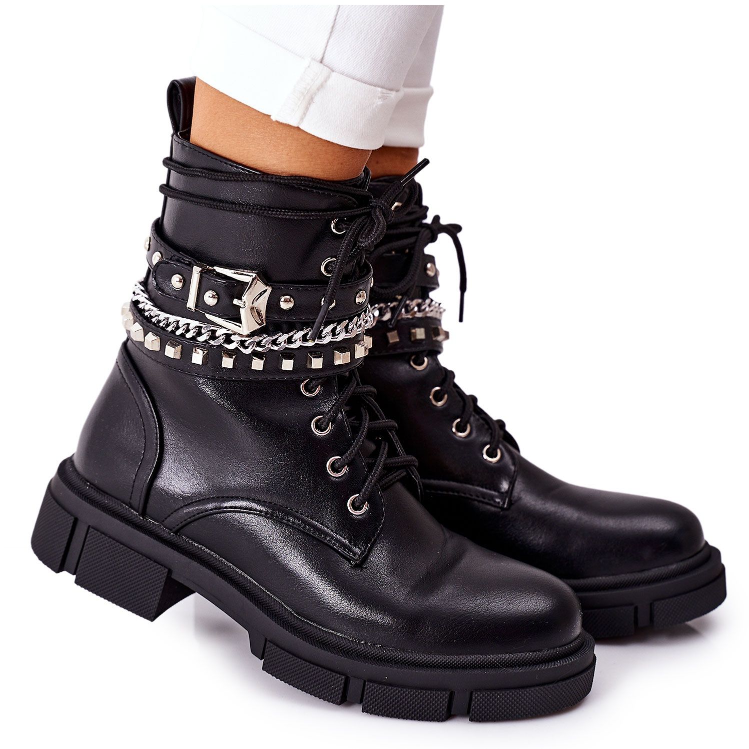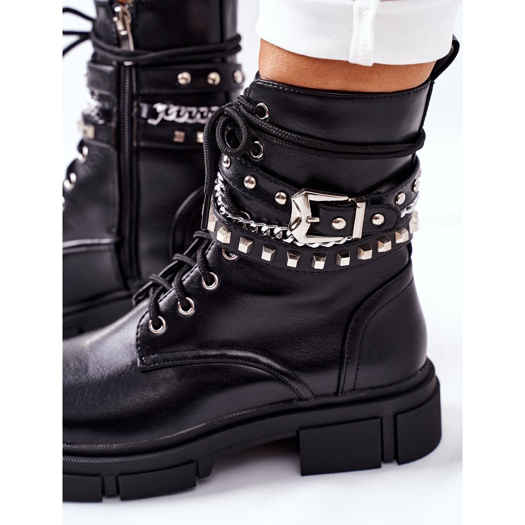 Une fermeture éclair élégante et une boucle supplémentaire rendent ces bottes non seulement fonctionnelles, mais aussi accrocheuses. La chaîne décorative sur la tige leur confère un caractère unique, parfaitement adapté aux dernières tendances de la mode. Avec un bout rond et une tige jusqu'à la cheville, ces bottes garantissent non seulement un look tendance, mais aussi un confort de port tout au long de la journée.