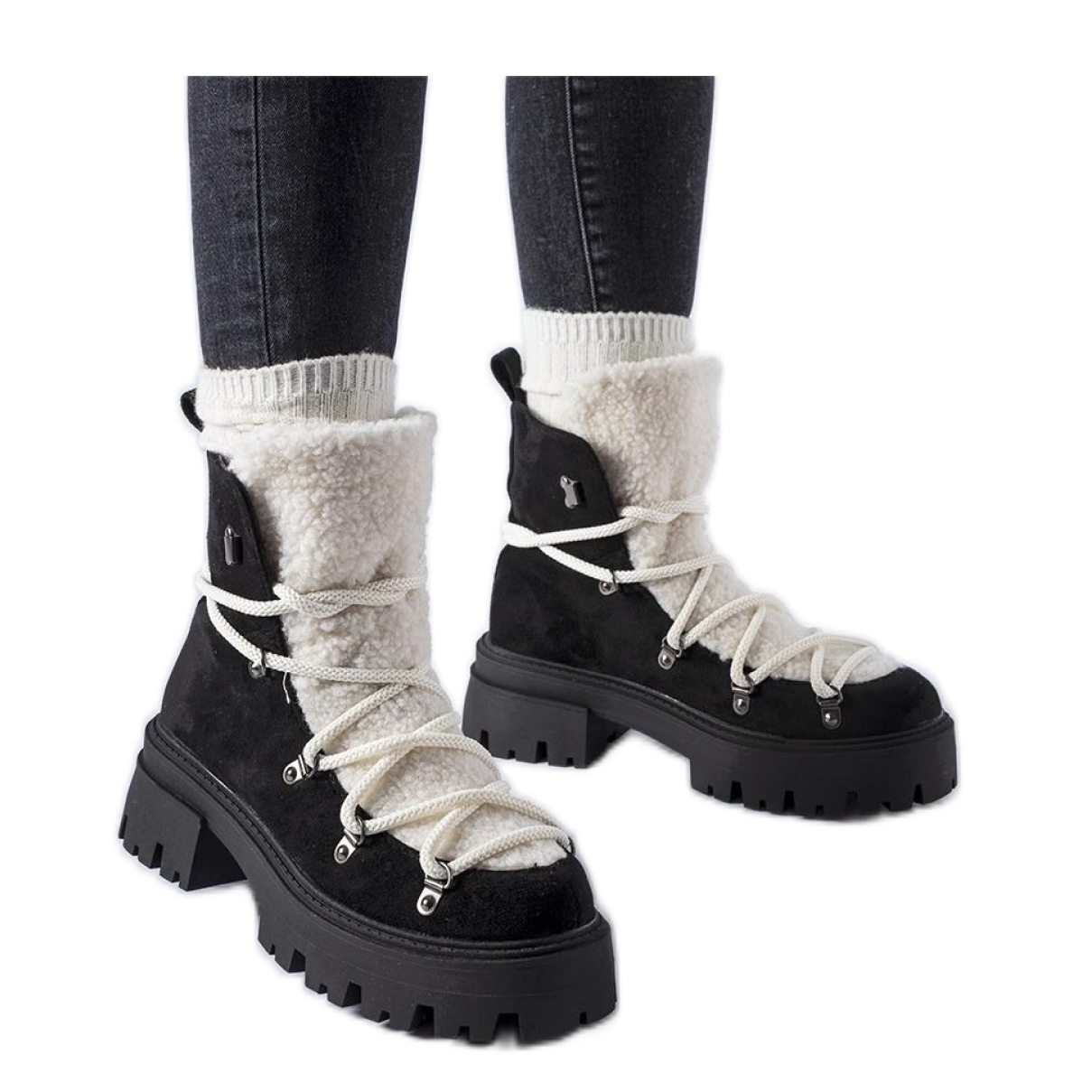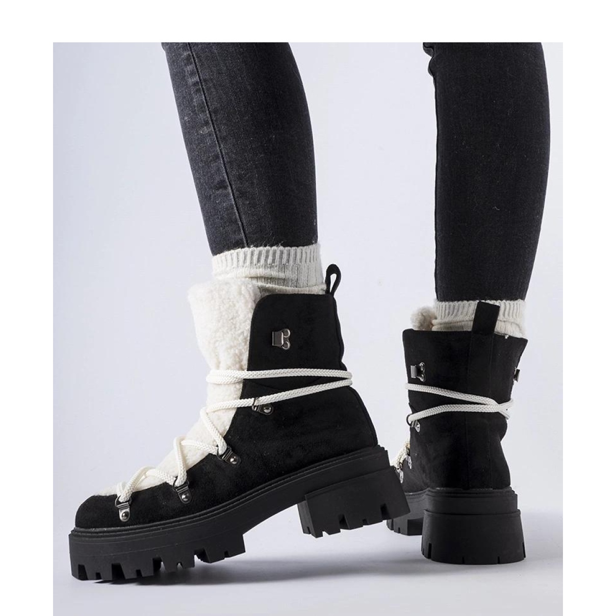 Les travailleurs noirs avec de la fourrure décorative sont un incontournable dans chaque garde-robe d'hiver. Leur design classique avec un nez rond les rend parfaitement s'adapter à diverses stylisations, leur donnant un caractère unique. Fabriqués en cuir en daim écologique de haute qualité, ces chaussures garantissent non seulement la durabilité, mais aussi la commodité, ce qui est nécessaire les jours froids.