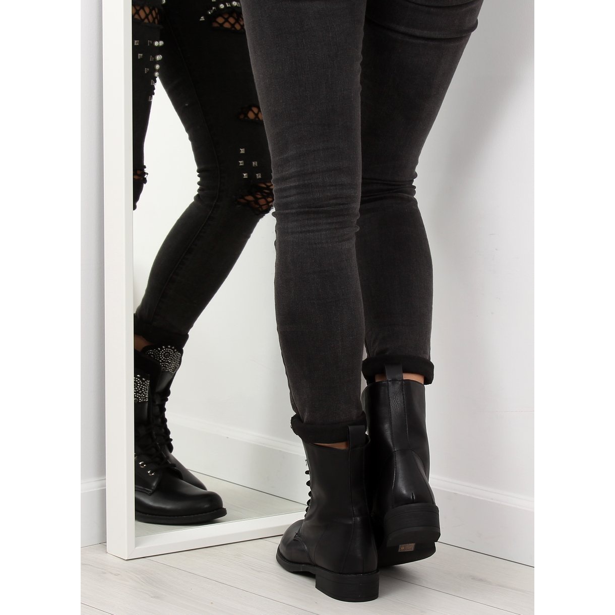 Les bottines se distinguent par une languette brillante, ornée de petites pierres, qui leur confère un éclat unique. Le design classique est souligné par un laçage simple, permettant un ajustement parfait à la largeur du pied. Fabriqués en cuir écologique, ils sont non seulement élégants, mais aussi respectueux de l'environnement. L'intérieur doublé de fourrure délicate garantit confort et chaleur lors des journées glaciales.
