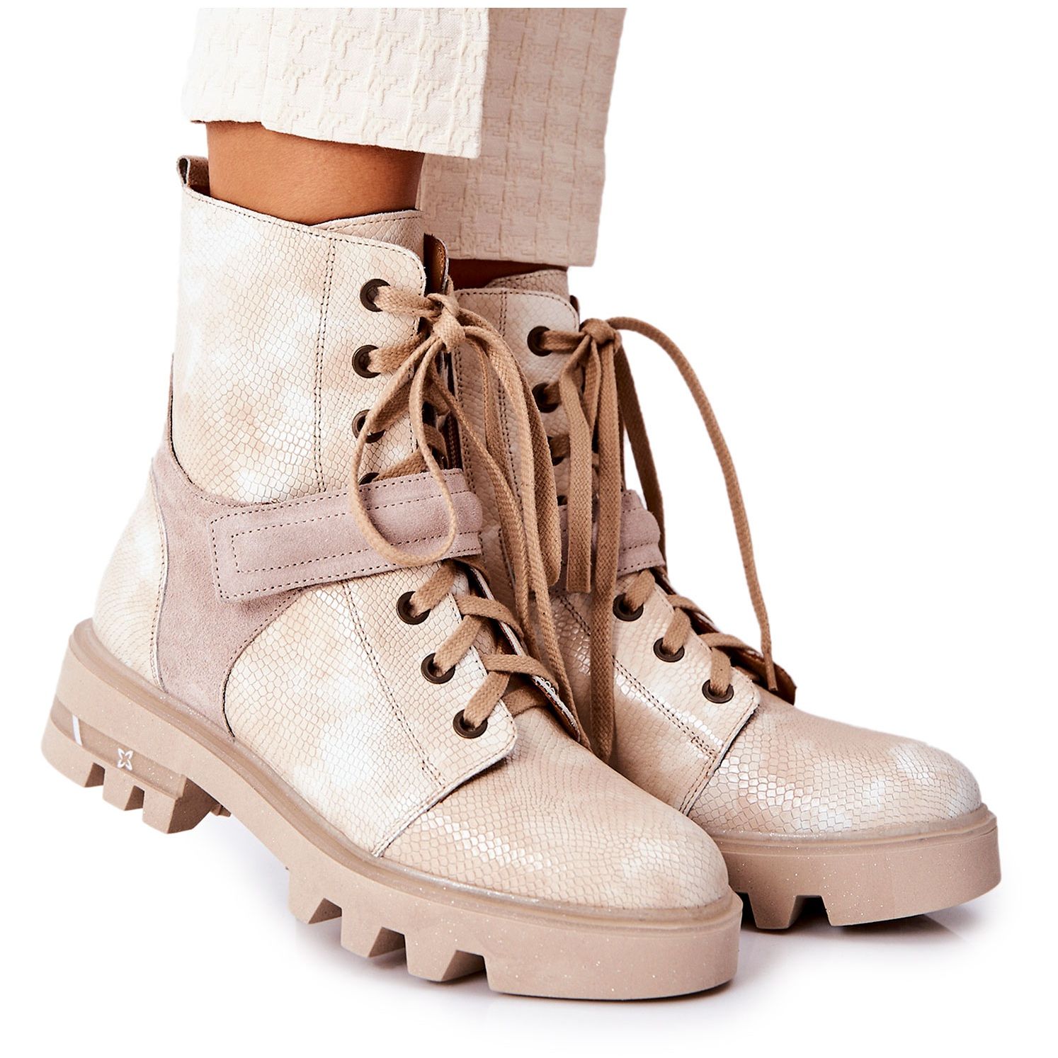 Maciejka Bottes de Travailleurs en Cuir Beige Maciejka 05219-04