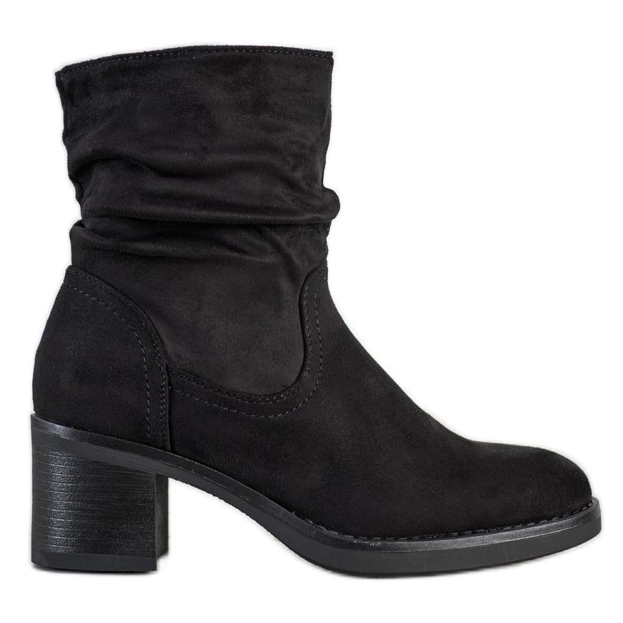 Découvrez le confort et le style avec les bottines noires Super Mode ! Ces bottines élégantes pour femmes sont le choix parfait pour les femmes qui apprécient un look décontracté qui peut être facilement assorti à de nombreux styles différents. Fabriqués en cuir écologique de haute qualité imitant le daim, ils impressionnent non seulement par leur design, mais aussi par leur confort de port.