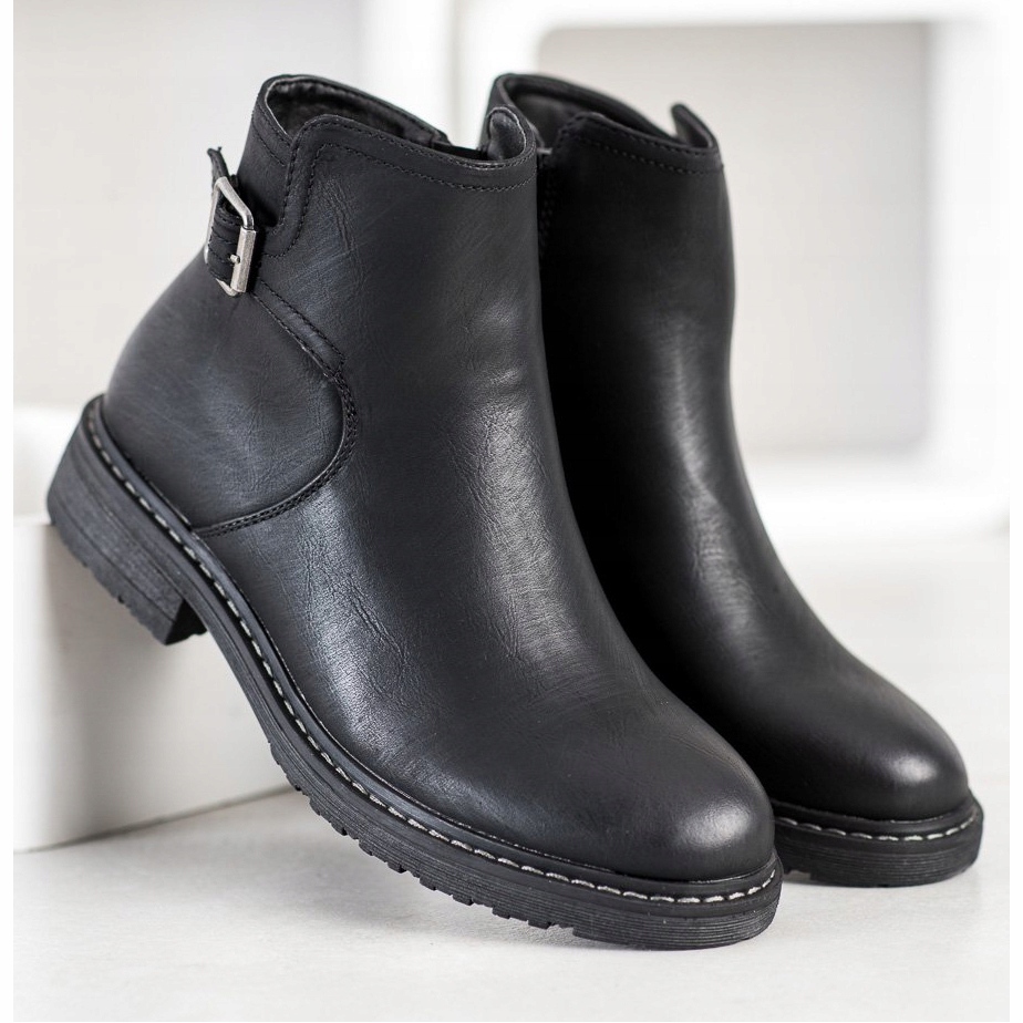 Découvrez l'élégance et le confort avec les bottines noires J. Star, qui s'intègrent parfaitement dans un style décontracté en toute occasion. Ces bottines pour femmes, fabriquées en cuir écologique de haute qualité, offrent non seulement un aspect esthétique, mais aussi durabilité et confort de port. La hauteur de la tige est de 12 à 13 cm, ce qui lui permet de couvrir parfaitement la cheville, et le talon doux et intégré ajoute élégance et confort.