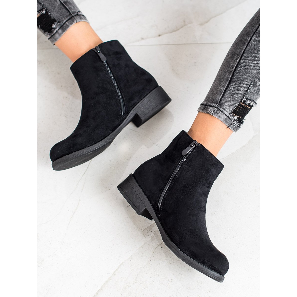 Découvrez l'élégance et le confort avec les bottines noires décontractées de SDS. Ces chaussures uniques, parfaites pour la saison automne/hiver, allient parfaitement style et fonctionnalité. Fabriqués en cuir suédé écologique de haute qualité, ils sont extrêmement attrayants et à la mode.