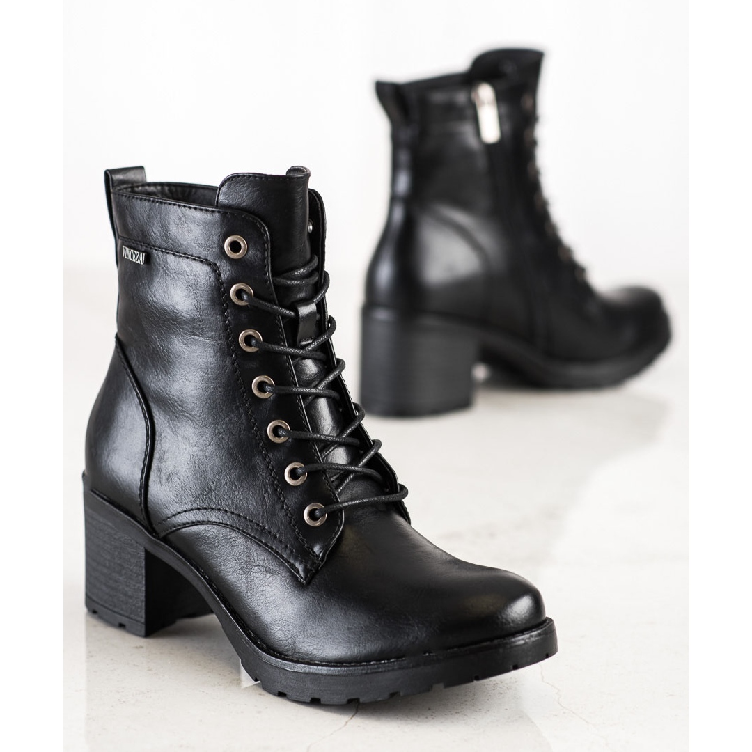 Les bottines décontractées VINCEZA noires sont le choix parfait pour les femmes qui apprécient la combinaison de style et de confort. Ces élégantes chaussures montantes, fabriquées en cuir écologique de haute qualité, sont parfaites pour les looks de tous les jours, aussi bien pour aller au travail que pour rencontrer des amis.