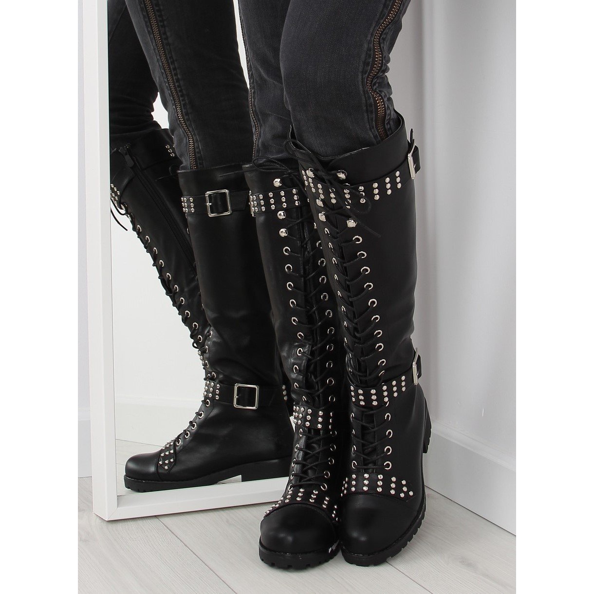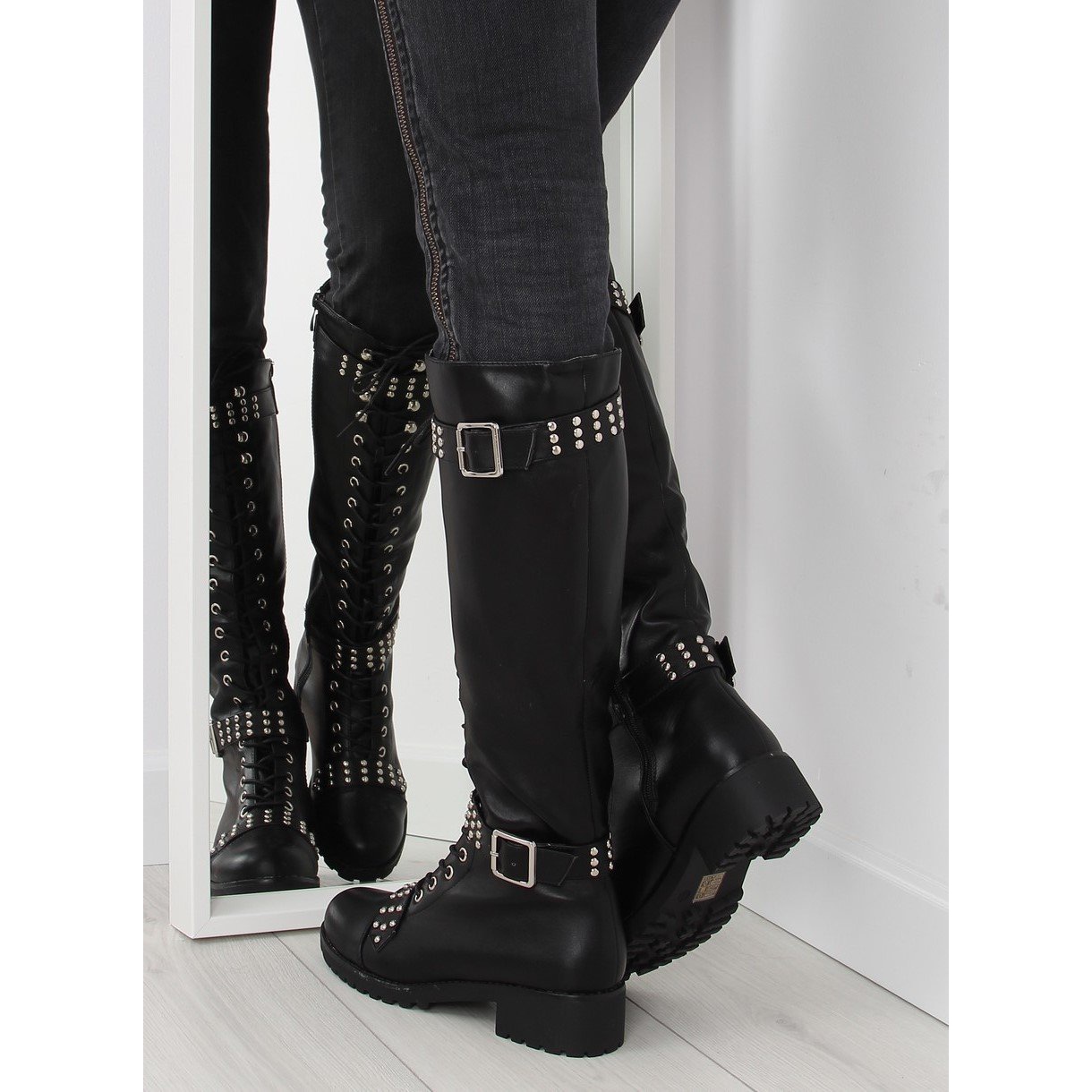 Les bottes noires cloutées PE116 sont des chaussures parfaites pour les femmes qui apprécient le style rock et tendance. Ces bottes uniques se distinguent par une riche décoration avec des brides à boucles et des strass argentés qui ajoutent du caractère à n'importe quel style. Une semelle solide avec protection assure confort et stabilité, et un talon plat les rend confortables même lorsqu'elles sont portées pendant de longues périodes.