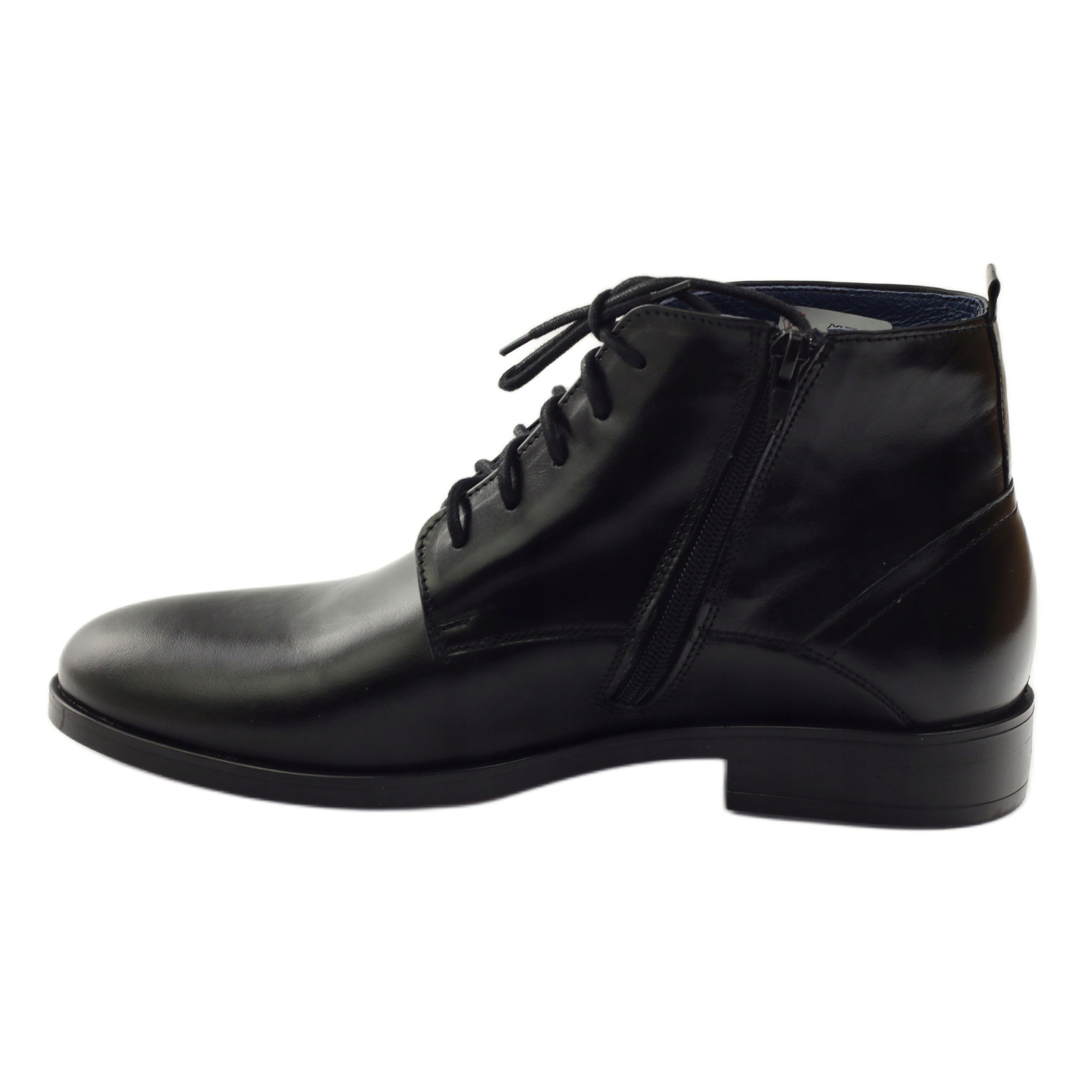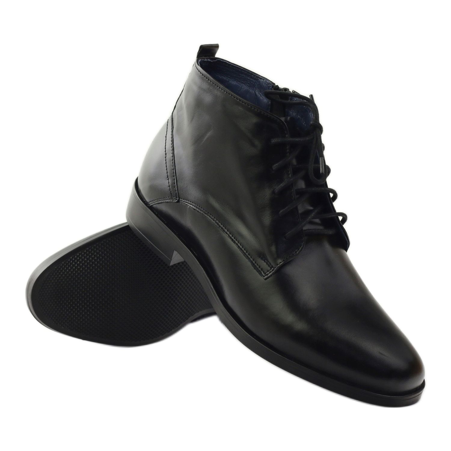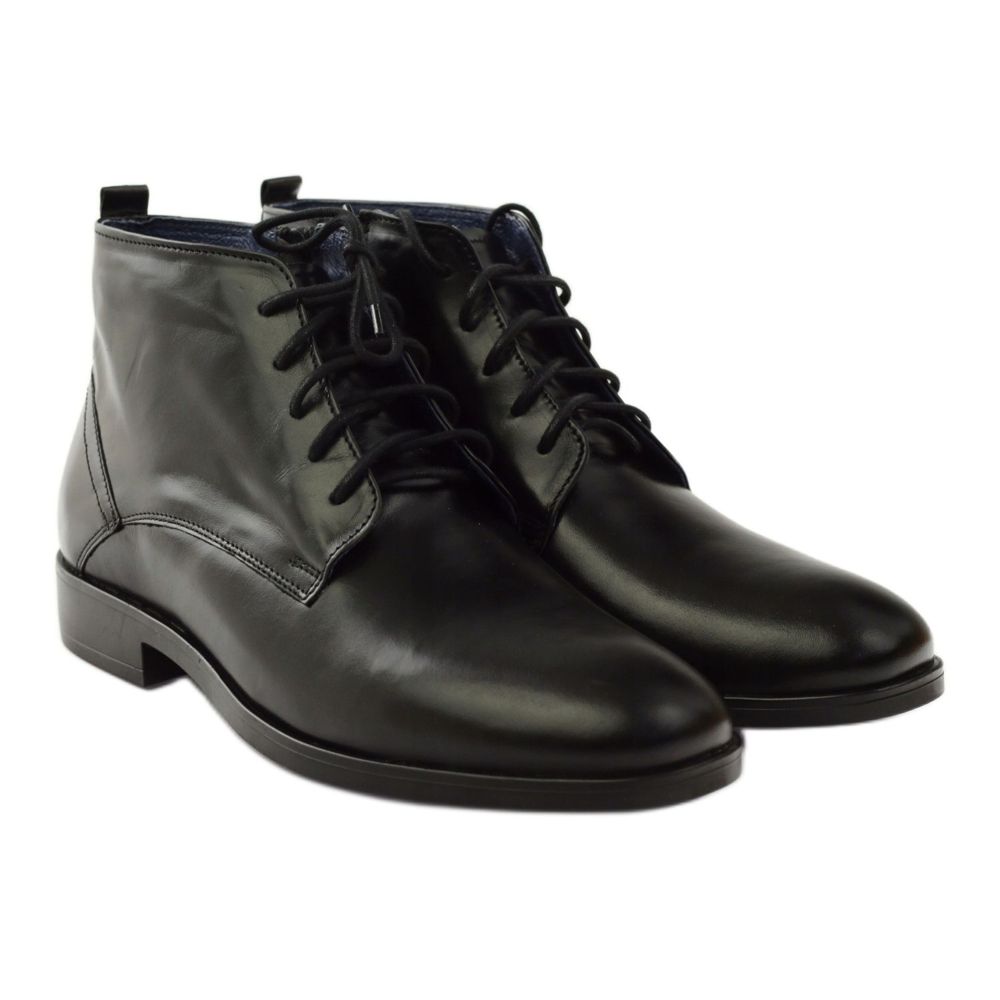 Les bottines pour hommes Nikopol modèle 663 sont disponibles dans une couleur noire classique, ce qui les rend faciles à assortir avec diverses tenues. Ils constitueront certainement un complément parfait à toute garde-robe masculine. Grâce à leur coupe haute et à leur finition solide, ils sont la solution parfaite pour les journées d'hiver.