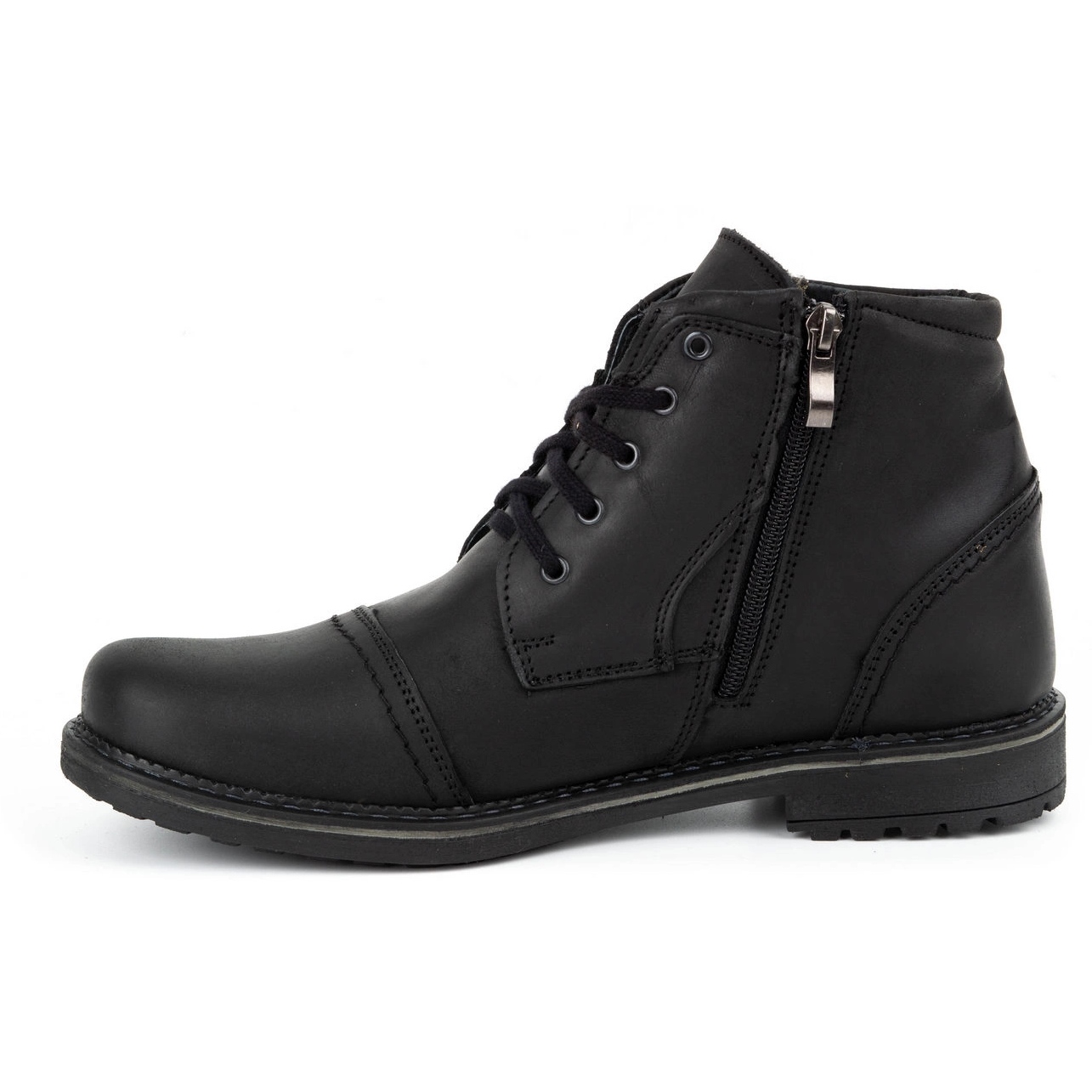 Des bottes d'hiver élégantes et durables d'Olivier, conçues pour le confort et une utilisation quotidienne les jours plus frais. La coupe classique et décontractée combine une tige en cuir avec des solutions pratiques - un château et un laçage - ce qui facilite l'installation et l'insertion de chaussures.