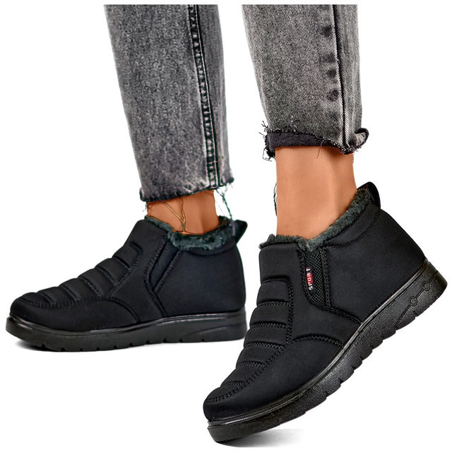 Fabriqués en cuir biologique, ils ont l'air élégants et modernes, et leur couleur noire correspond à de nombreuses stylisations d'hiver. L'intérieur des chaussures est rembourré avec une fourrure éco-touchée, qui offre une chaleur et un confort thermique. Grâce à la course standard, ils conviendront à différents types de pieds.