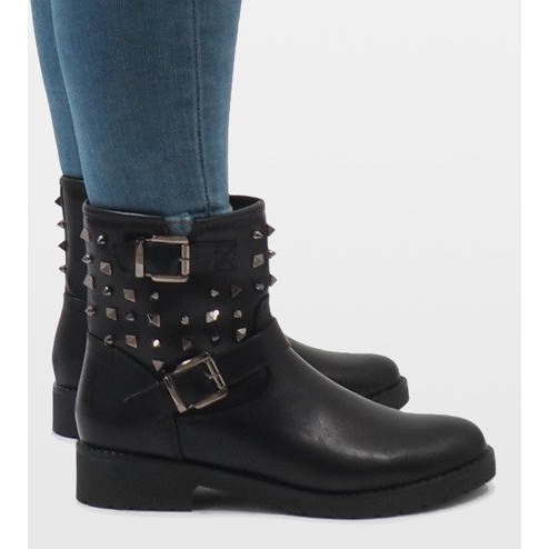 Les bottines arrivent au-dessus de la cheville, ce qui les rend parfaites pour les styles décontractés et plus élégants. Un talon plat de 3,5 cm assure la stabilité et la semelle synthétique noire ajoute un caractère moderne. De plus, des détails uniques sous forme de strass et de clous leur confèrent originalité et style unique.