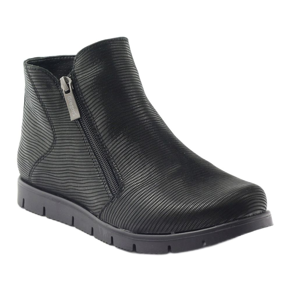 Les bottes d'hiver Gregors 611 pour femmes en noir sont un choix idéal pour les femmes qui apprécient la combinaison de style et de confort. Confectionnées en cuir naturel gaufré, ces bottines élégantes s'adaptent parfaitement à tous les pieds, et leur coupe de la tige met efficacement en valeur les jambes.