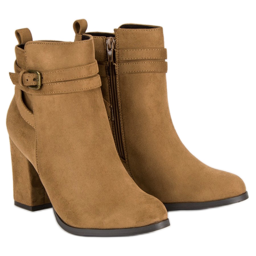 Découvrez l'élégance et le confort avec les bottines Corina, qui deviendront un élément indispensable de votre garde-robe ! Ces bottines marron à talons hauts uniques allient style et fonctionnalité. Fabriqués en cuir suédé écologique de haute qualité, ils sont extrêmement impressionnants et ajoutent de la classe à n'importe quel style.