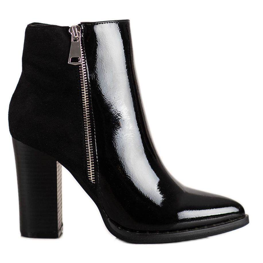 Fabriquée avec des matériaux de haute qualité, la partie extérieure des bottes est une combinaison de cuir écologique et de simili daim en proportions égales, ce qui leur donne un look tendance. La fermeture éclair décorative sur les côtés est un détail intéressant qui attire l'attention et distingue ces bottes des autres modèles. De plus, la finition laquée leur donne une touche élégante, parfaite pour les occasions spéciales.