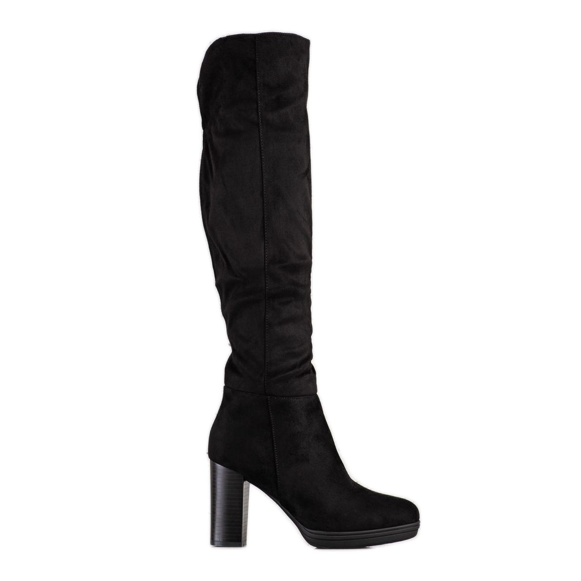 Les bottes ont un talon de 9 cm en forme de bloc, ce qui ajoute élégance et stabilité, et leur hauteur supérieure est de 46 cm, arrivant parfaitement jusqu'aux genoux. Grâce à l'isolation, elles sont parfaites pour les journées plus froides et la matière intérieure textile assure le confort de vos pieds.