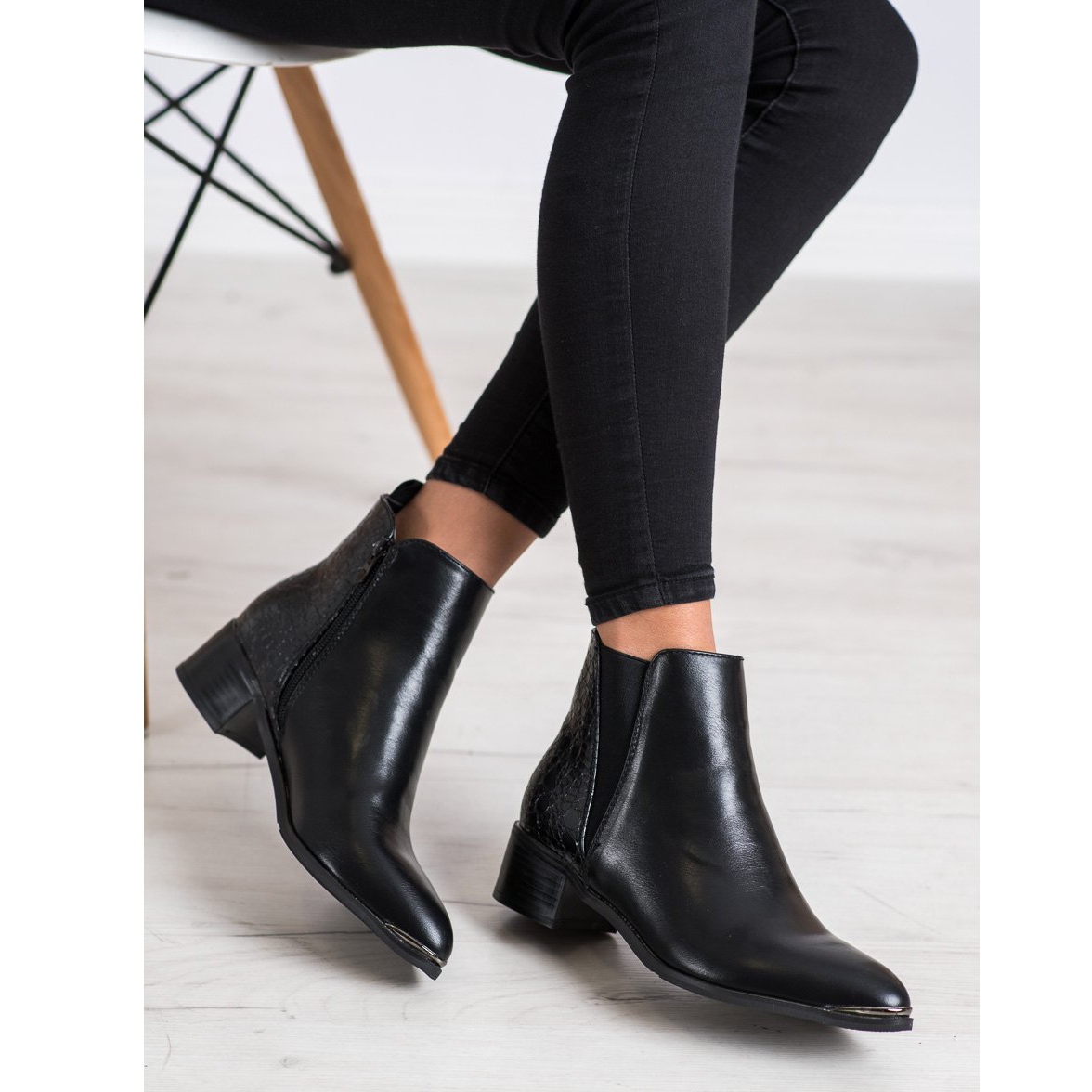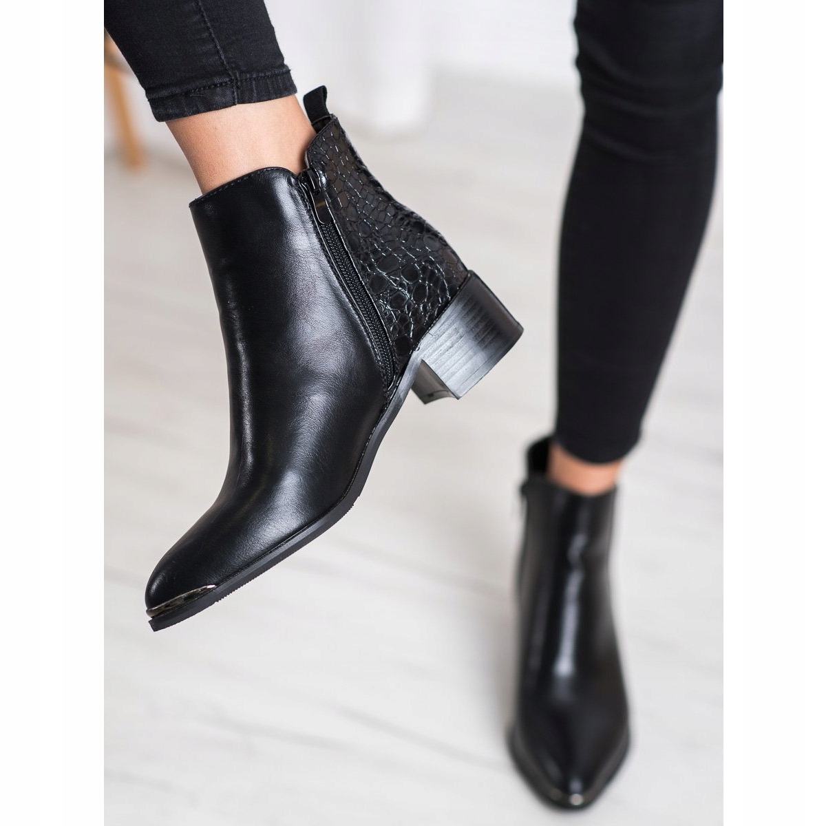 Les bottines élégantes à talons bas du fabricant Kayla sont un excellent choix pour les femmes qui apprécient le design à la mode et le confort de port. Ces élégantes bottes noires, fabriquées en cuir écologique de haute qualité, s'adaptent parfaitement au style automne-hiver, offrant chaleur et confort lors des journées les plus froides.