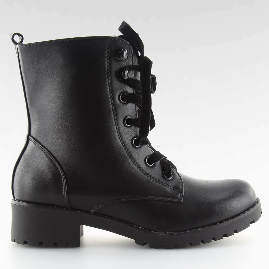Des bottes noires de style militaire qui combinent le caractère brut des bottes Bovver avec un délicat accent de ruban de velours au lieu des lacets traditionnels. Une semelle solide avec protection et un talon bas de 4 cm soulignent leur caractère, et la fermeture éclair interne permet de les enfiler facilement au quotidien. Fabriqués en cuir écologique, avec doublure en mousse, ils offrent confort et chaleur supplémentaire lors des journées les plus froides.