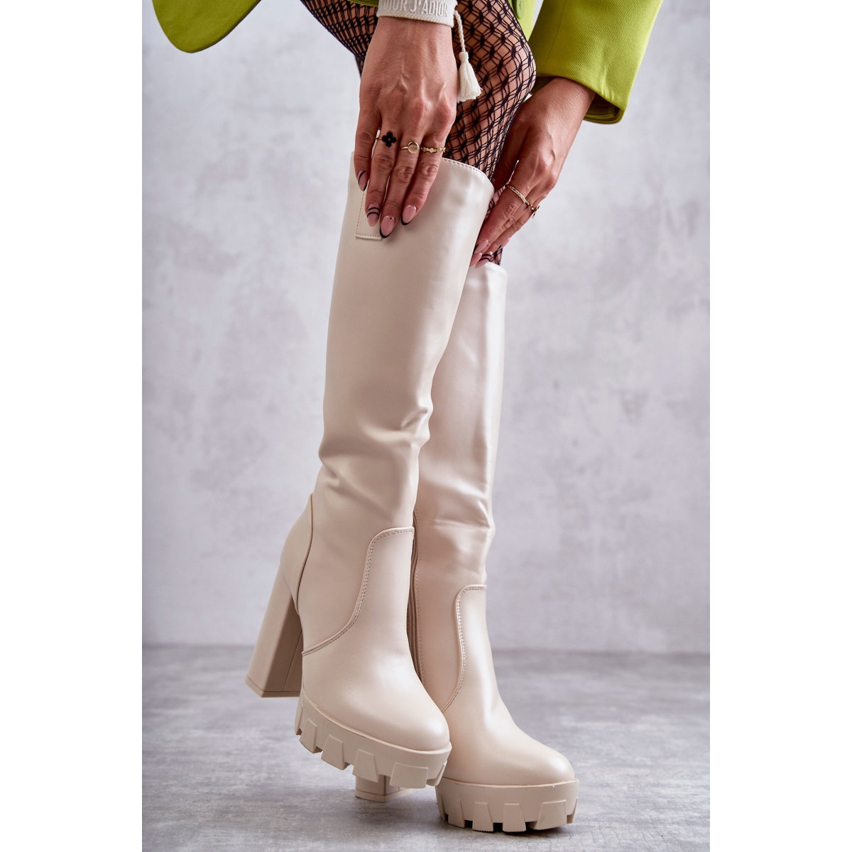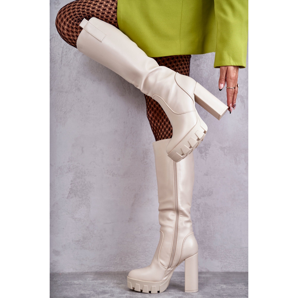 Bottes à plateforme en cuir écologique à la mode WS1 Beige Isabell - Synonyme d'élégance et de sens écologique