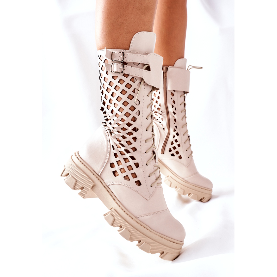 Détails: PA2 Bottes En Cuir Ajourées Femme Trappers Hootie Beige