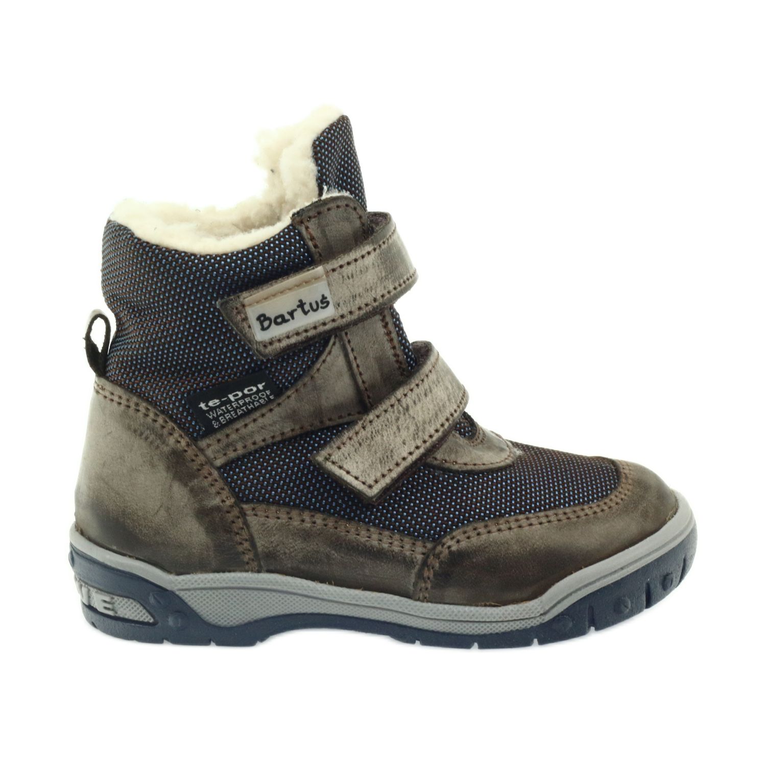 Chaussures pour enfants confortables, chaudes et imperméables de la célèbre entreprise polonaise Bartuś. Fabriqués en cuir naturel, équipés d'une membrane TE-POR imperméable et respirante, ils protègent de l'humidité tout en éliminant l'excès de vapeur. L'intérieur isolé avec de la laine de mouton naturelle offre une chaleur agréable lors des journées glaciales. La semelle antidérapante profondément profilée augmente la stabilité sur les surfaces glissantes, et le talon renforcé assure un bon positionnement du talon et protège l'articulation de la cheville de l'enfant. La fermeture fermeture scratch rapide permet d'enfiler et d'ajuster facilement la chaussure vous-même. Le produit possède le certificat Healthy Foot, confirmant sa construction favorable au développement.
