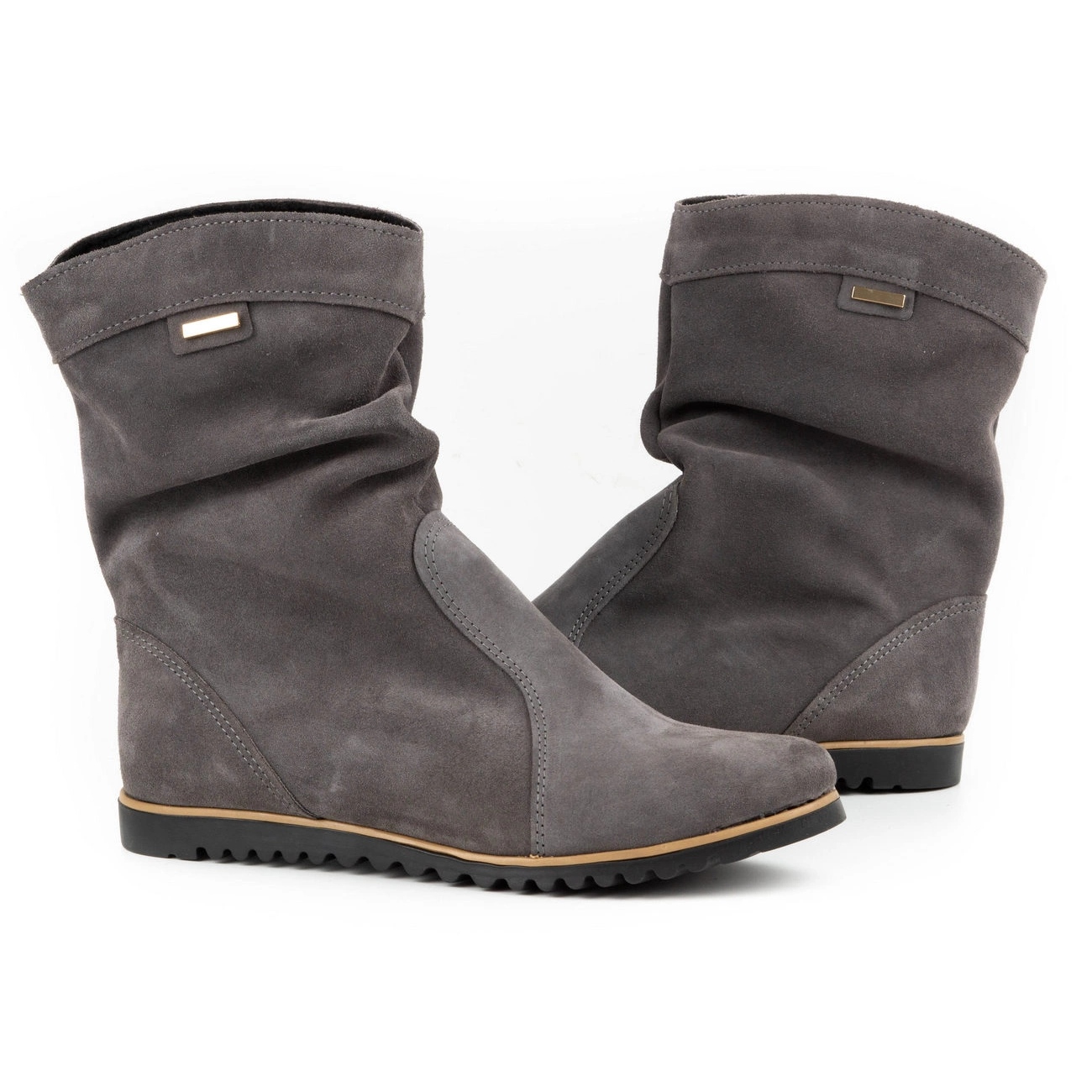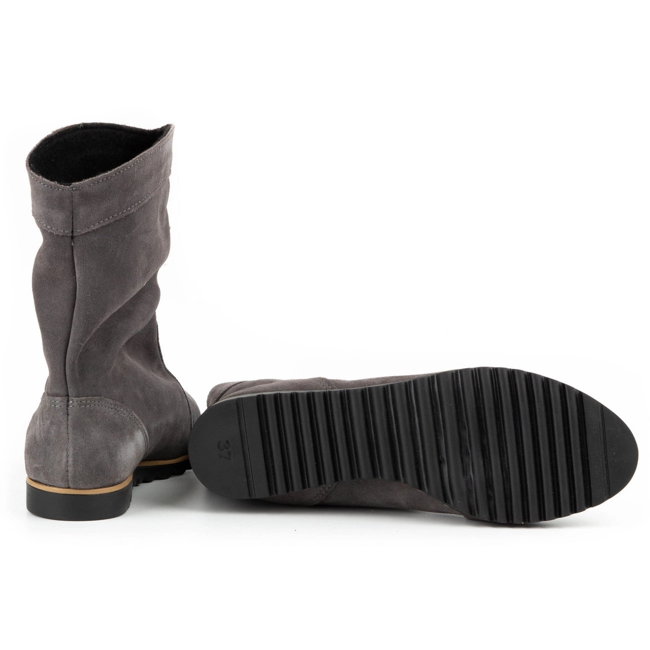 Les chaussures sont d'hiver, sans motif, mais cela ne les empêche pas de se combiner avec différents styles. Pour protéger le cuir, le fabricant recommande d'utiliser des produits d'entretien et de rénovation du daim et du nubuck.
