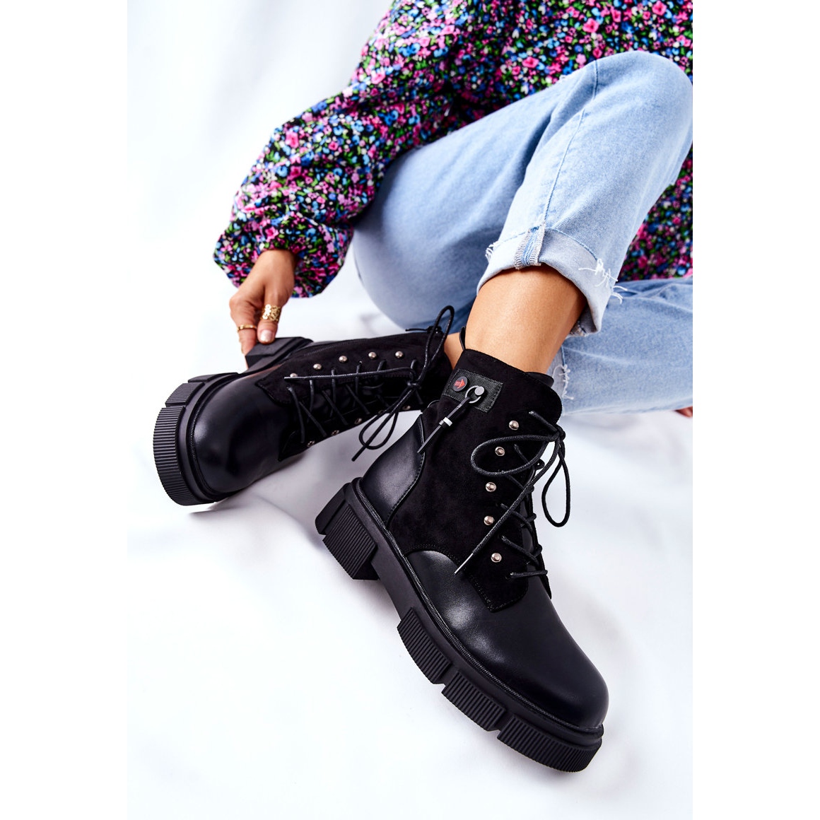 Détails: POTOCKI Bottes en cuir de travailleurs nouées en noir à votre façon ! le noir