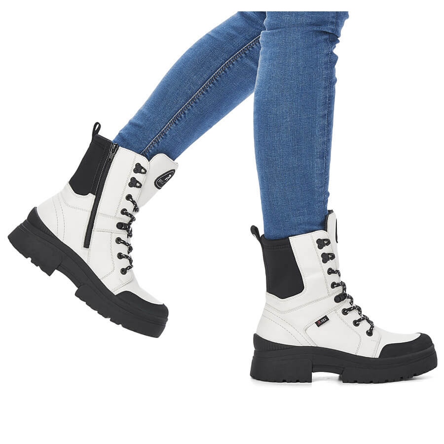 Détails: Bottes en cuir imperméables blanches pour femmes Rieker Revolution W0374-80 le noir