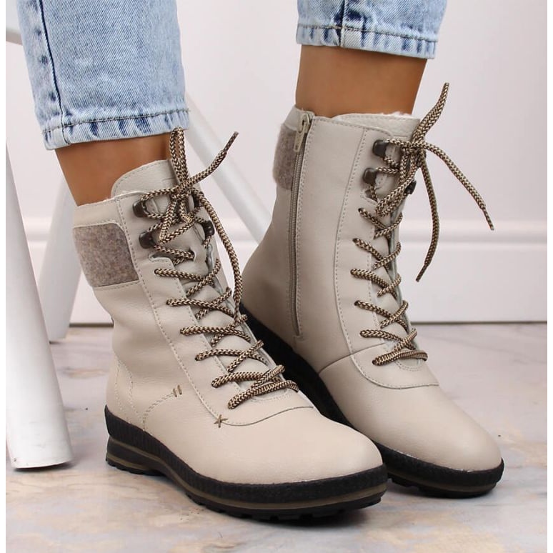 Détails: Bottes en cuir isolées confortables Rieker W RKR614, beige