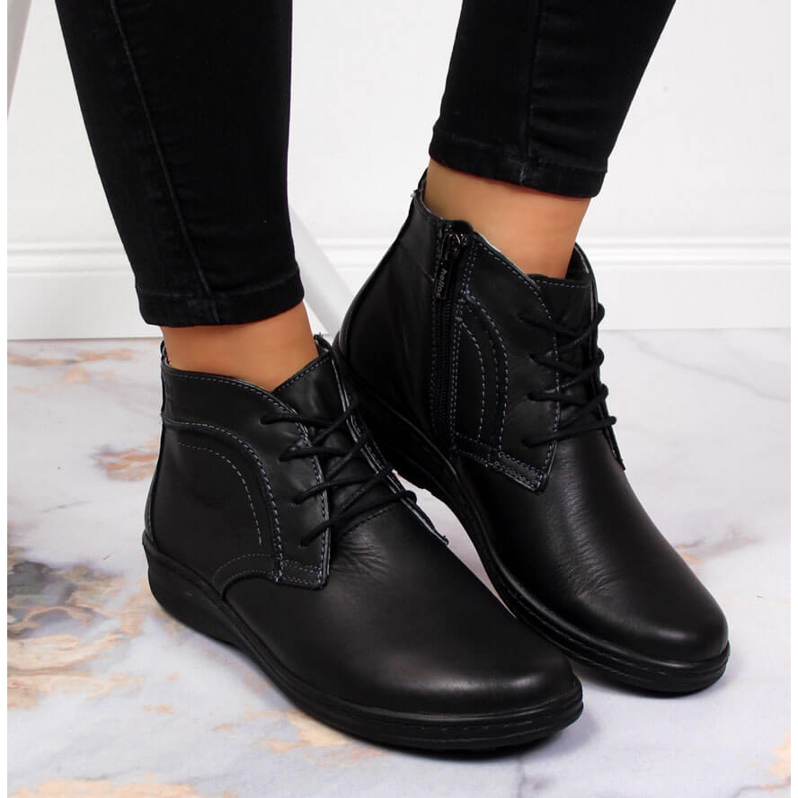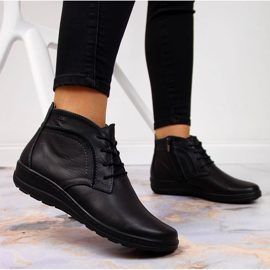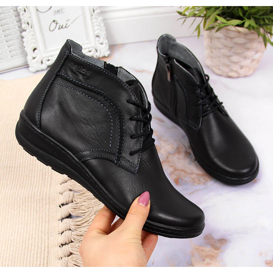 Découvrez un confort et un style inégalés en choisissant les bottines en cuir isolé noir Helios 612-2. Ce modèle unique allie qualité de production polonaise et design tendance qui plaira sûrement à toutes les femmes. Grâce au laçage et à une fermeture éclair pratique, enfiler et enlever les chaussures devient extrêmement facile et confortable.