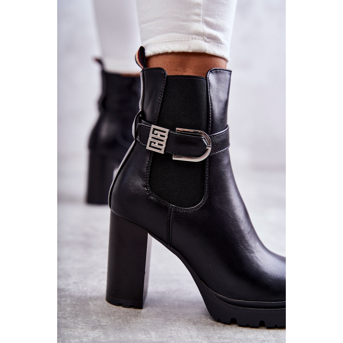 Détails: FE1 Bottes en cuir noir Maresol sur un poteau avec une ceinture décorative