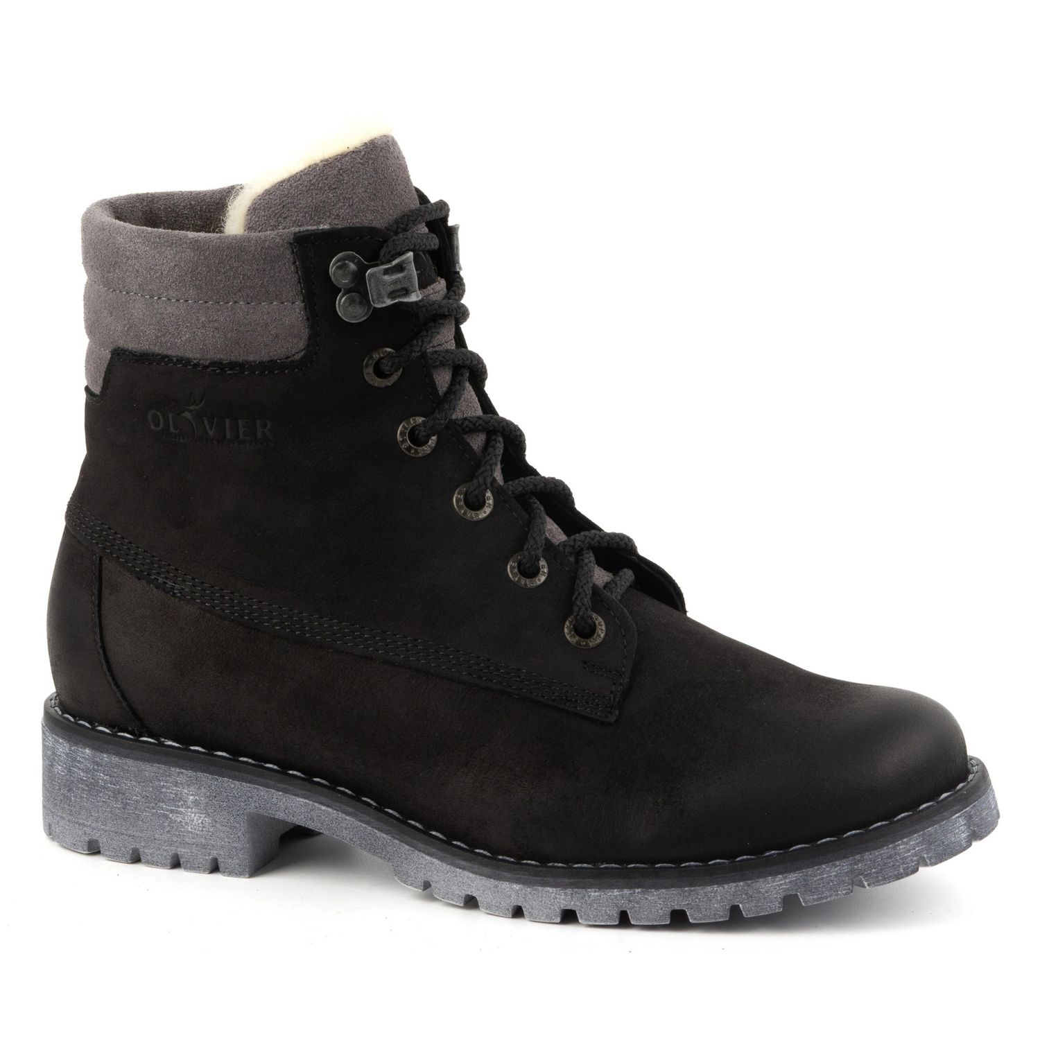 Les bottes en cuir des femmes isolées d'Olivier dans le modèle 365BB sont le choix parfait pour les jours d'hiver. Ces chaussures élégantes dans un ton noir classique non seulement se mélangent parfaitement avec diverses stylifications, mais assurent également un confort de port inégalé.