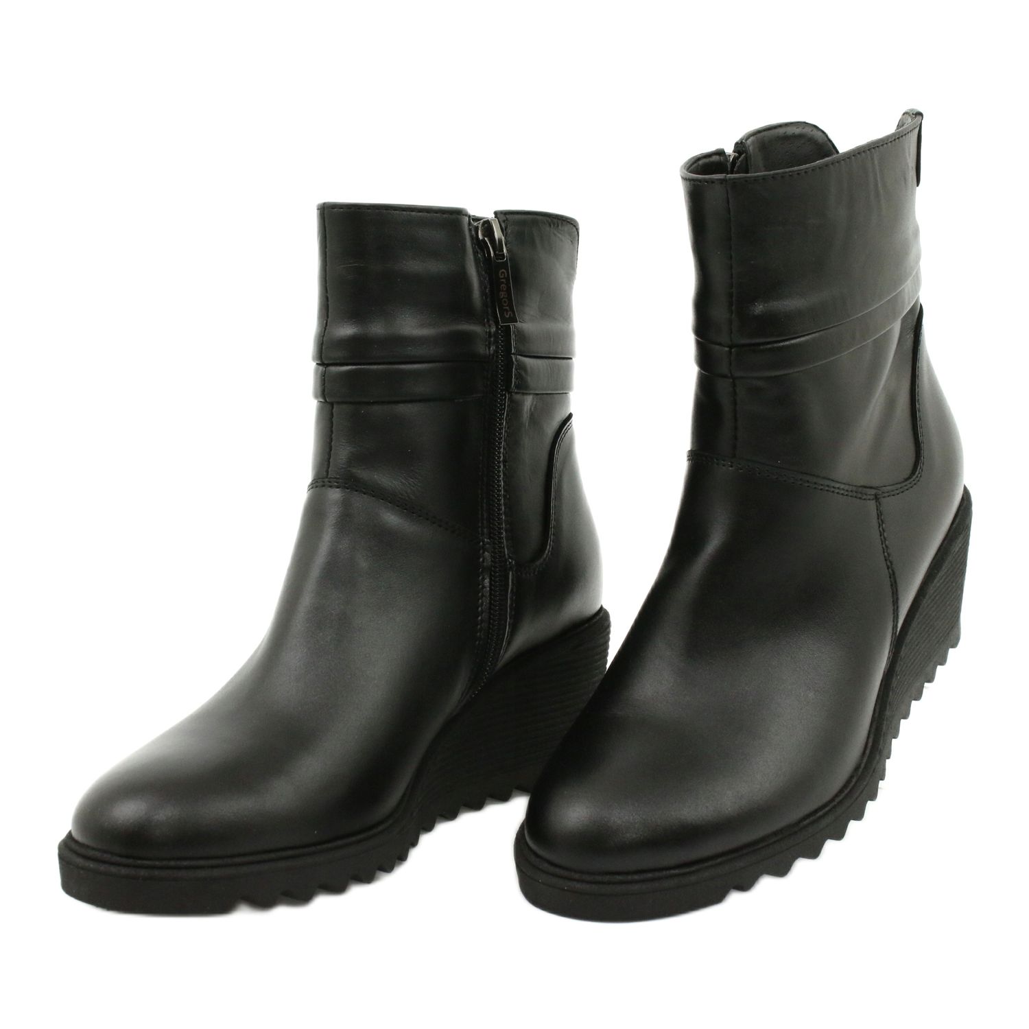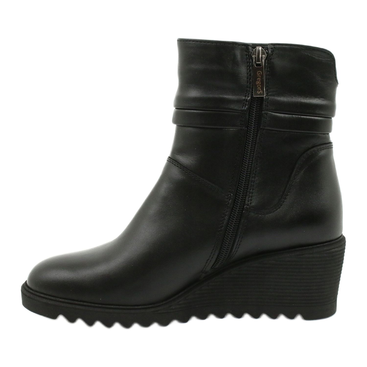 Des bottes Gregors 893 élégantes et confortables en cuir naturel lisse de haute qualité dans une couleur noire classique. Une coupe simple et intemporelle avec un nez légèrement arrondie fonctionnera quotidiennement et dans des stylisations plus formelles. Grâce au coin stable, les chaussures allongent non seulement la silhouette, mais assurent également du confort de porter toute la journée.