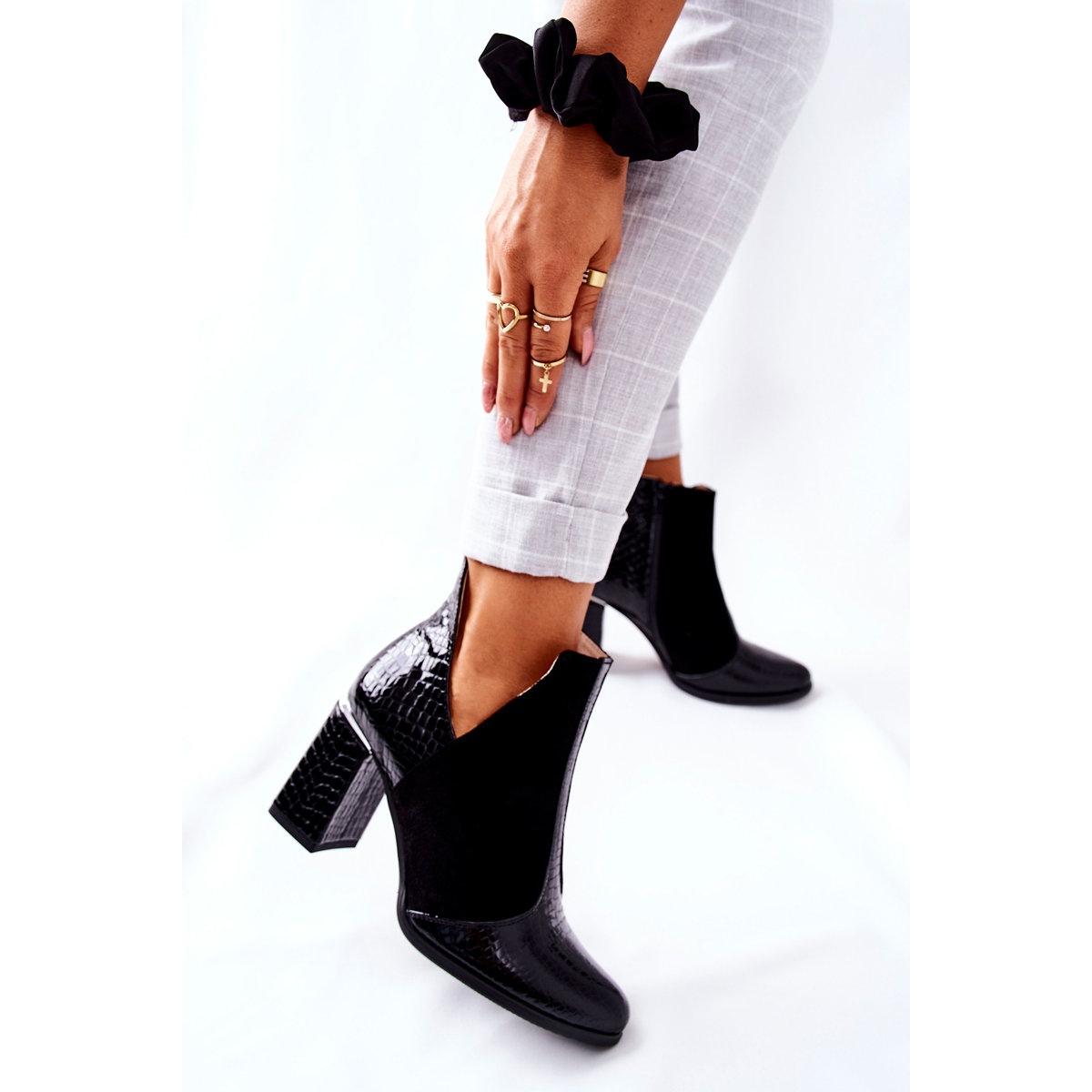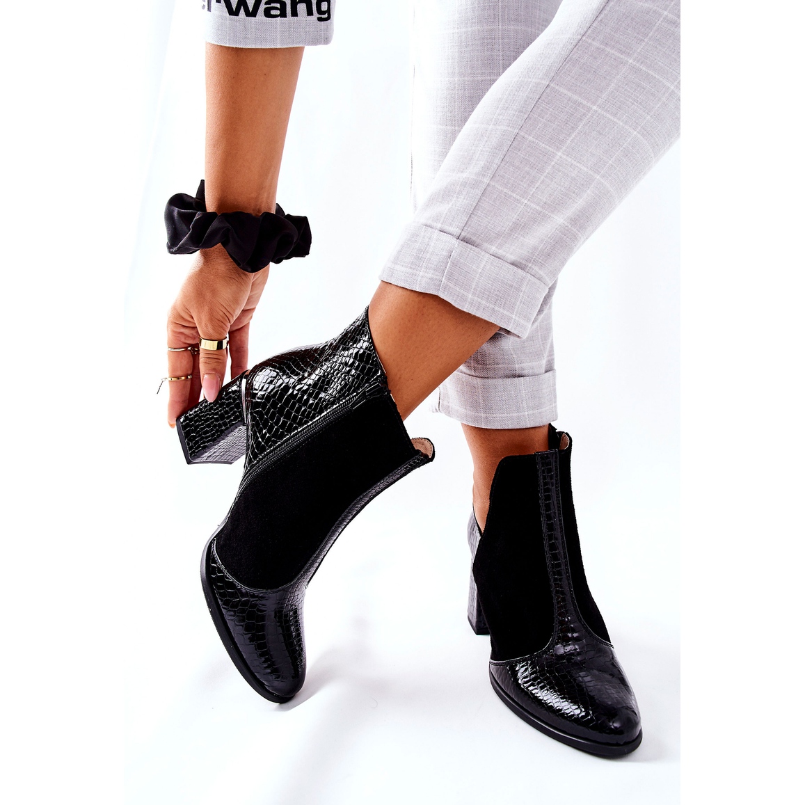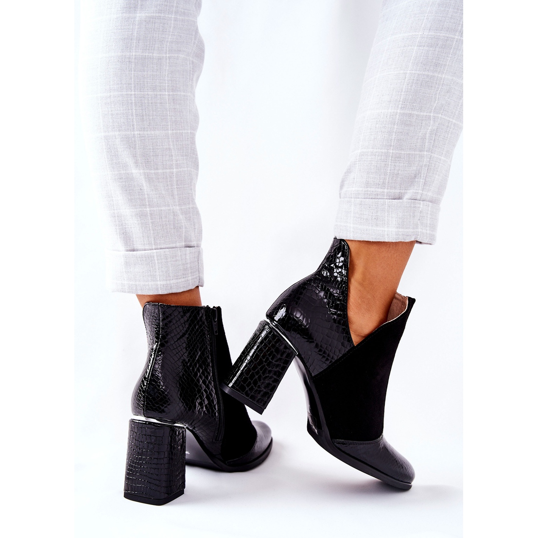 Boots classiques, dans une version insolite ! Le haut est une combinaison de daim naturel et de cuir grainé imitant la peau de crocodile. Exprimez votre caractère prédateur avec ces bottes incroyables ! Le poste délicat et la coupe à la hauteur de la cheville sont magnifiques. Il sera plus facile de mettre la fermeture éclair cousue sur le côté. Lorsque vous choisissez une taille, veuillez utiliser le tableau des tailles.