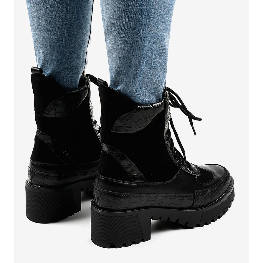 Grâce à la fermeture à lacets, les chaussures maintiennent non seulement bien la jambe, mais permettent également un ajustement parfait. La hauteur des chaussures, atteignant 23 cm au-dessus de la cheville, leur donne du caractère, et le bout rond les rend agréables à porter. Elles possèdent un talon solide en forme de bloc, de 5 cm de haut, qui assure stabilité et confort lors de la marche.