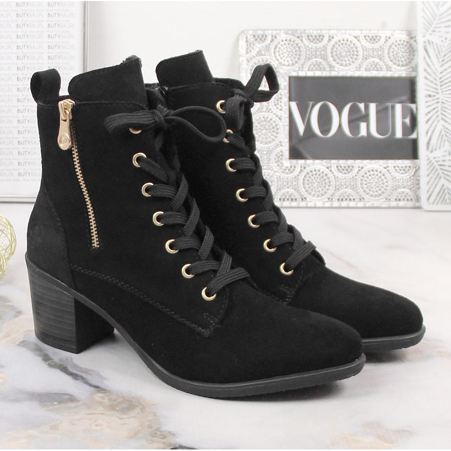 Détails: Bottes en cuir suédé noir Rieker Y2022-00 sur le poteau le noir