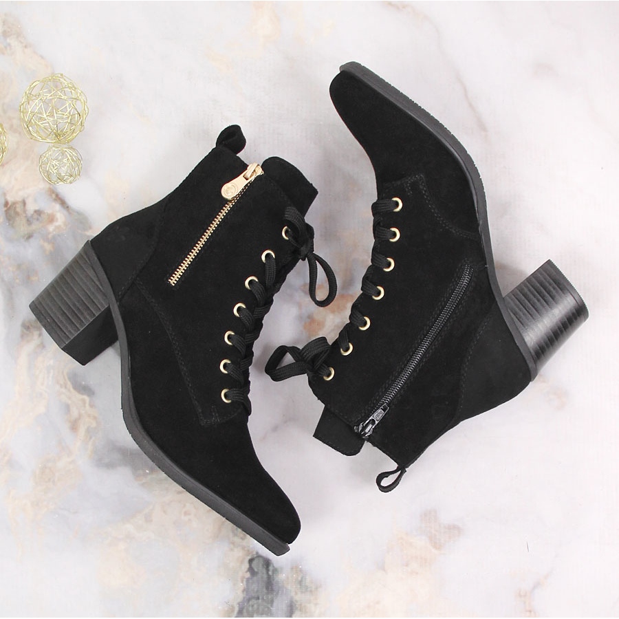 Leur conception classique jusqu'à la cheville les rend parfaites pour les journées d'automne et d'hiver, et la hauteur du talon bloc de 6 cm ajoute une élégance subtile à n'importe quel style. À l'intérieur des chaussures se trouve une doublure en fourrure chauffante, qui garantit une chaleur agréable même pendant les jours les plus froids, et assure également un port confortable grâce à l'insert en fourrure.