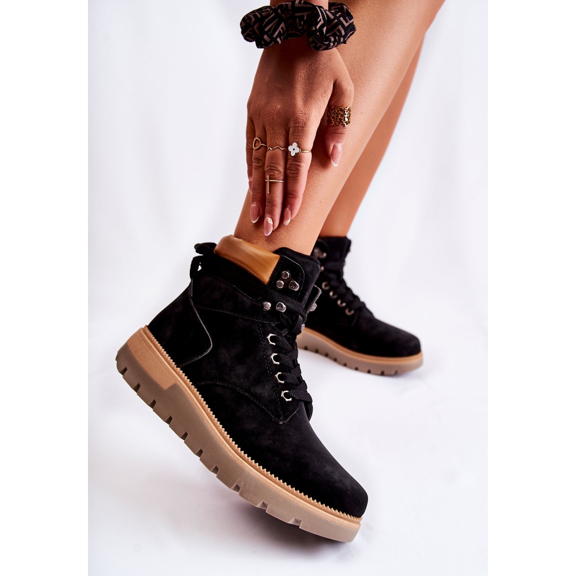 Ce modèle est monté sur une plateforme avec des rainures intéressantes, ce qui non seulement ajoute du caractère, mais assure également un confort d'utilisation. Le bout arrondi et la tige qui recouvre la cheville donnent aux bottes un aspect sensuel et tendance. De plus, une petite boucle à l'arrière de la tige facilite l'enfilage des chaussures, ce qui sera certainement apprécié par toutes les femmes qui courent tous les jours.