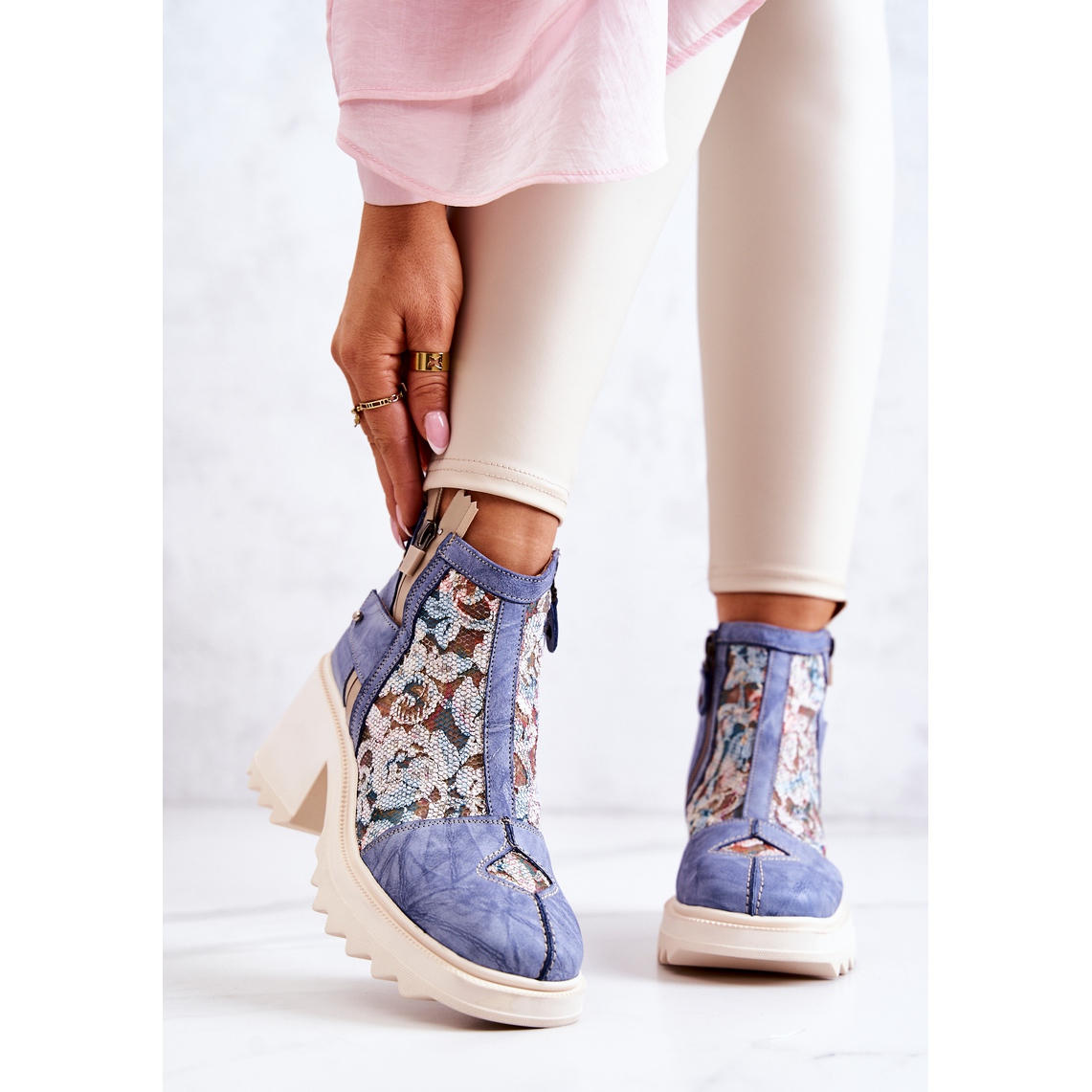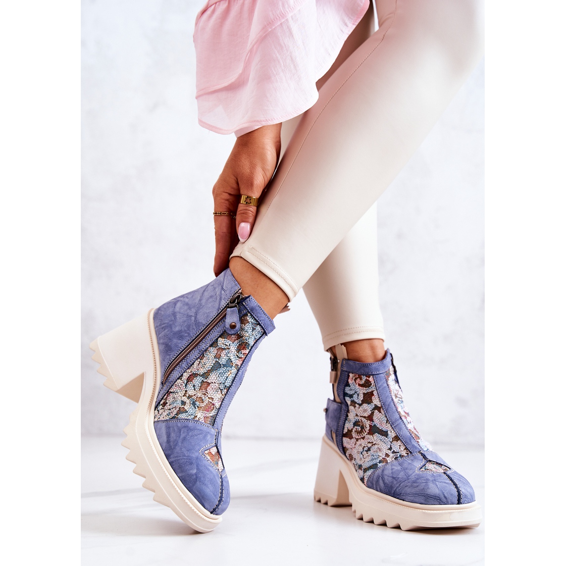 Détails: Bottes en cuir sur un poteau massif Maciejka Bleu 05325-06