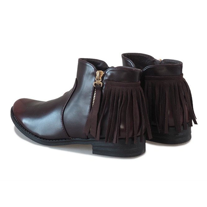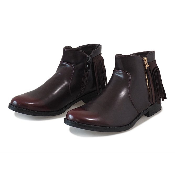 Nous vous présentons des bottes vernies bordeaux dans le style bohème - modèle A2643-45. Ces chaussures tendance se distinguent par une belle nuance de rouge intense, qui s'adapte parfaitement à l'ambiance automnale. Ils sont parfaits pour compléter de nombreux styles, leur ajoutant un charme unique.