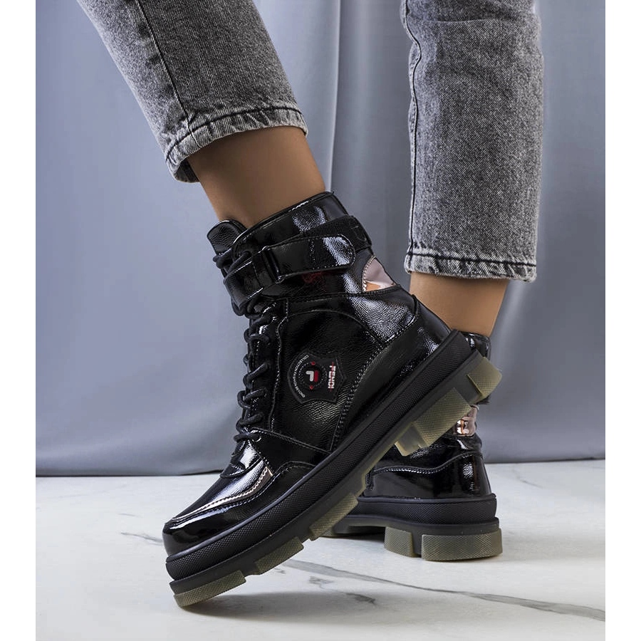 Inna marka Bottes en cuir verni noir de Salent le noir